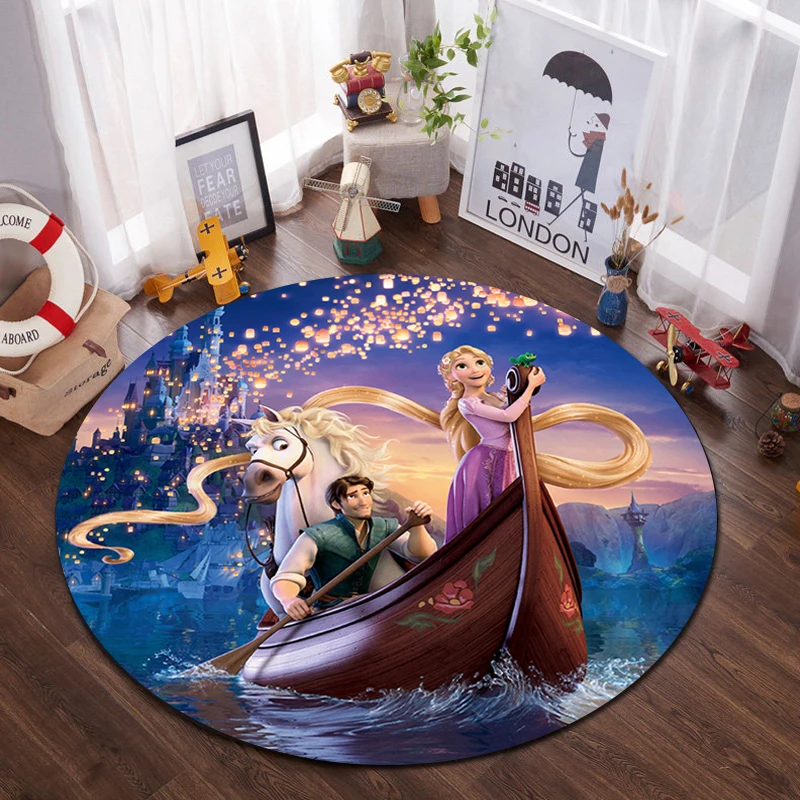 Детский игровой коврик Disney Princess, круглый коврик 100 см, прикроватный напольный ковер для гостиной, нескользящий водопоглощающий ковер для ванной комнаты