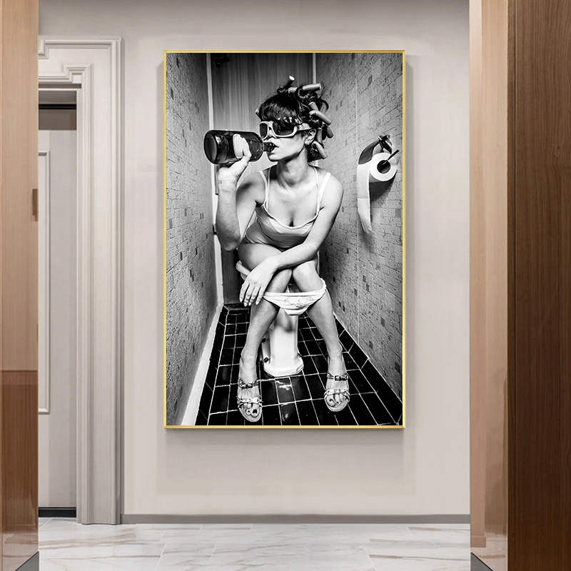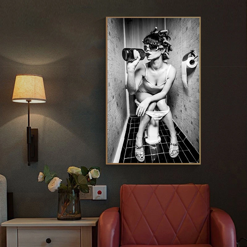 Современное искусство Сексуальная Девушка сидит в туалете картины плакаты и принты черные белые принты настенные картины для дома