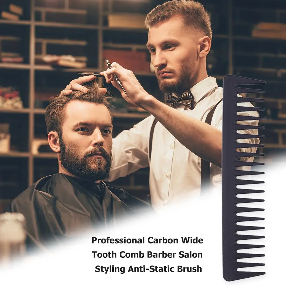 Профессиональная гребень из углеродного волокна с широкими зубьями для мужчин и женщин, прочная термостойкая профессиональная Антистатическая щетка для парикмахерской и укладки волос