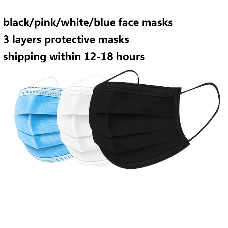 3-слойная одноразовая маска для рта, розовая, белая, черная маска д...