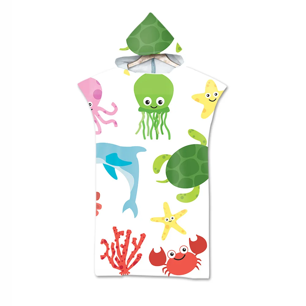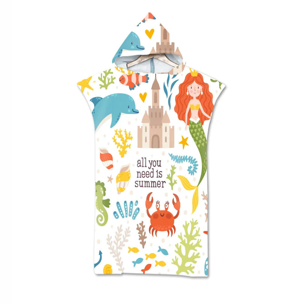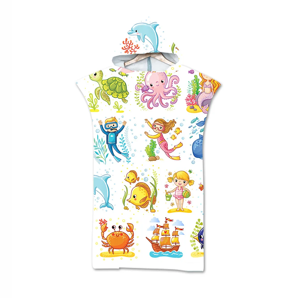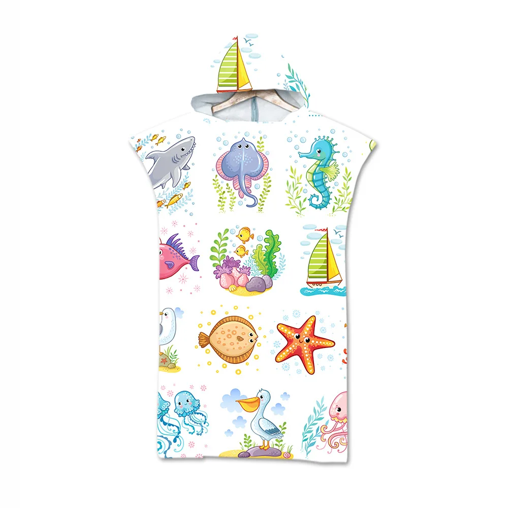 Банный халат из микрофибры с капюшоном и мультяшными рыбками, Сменное полотенце, пончо, полотенце для серфинга, для плавания, пляжный Халат