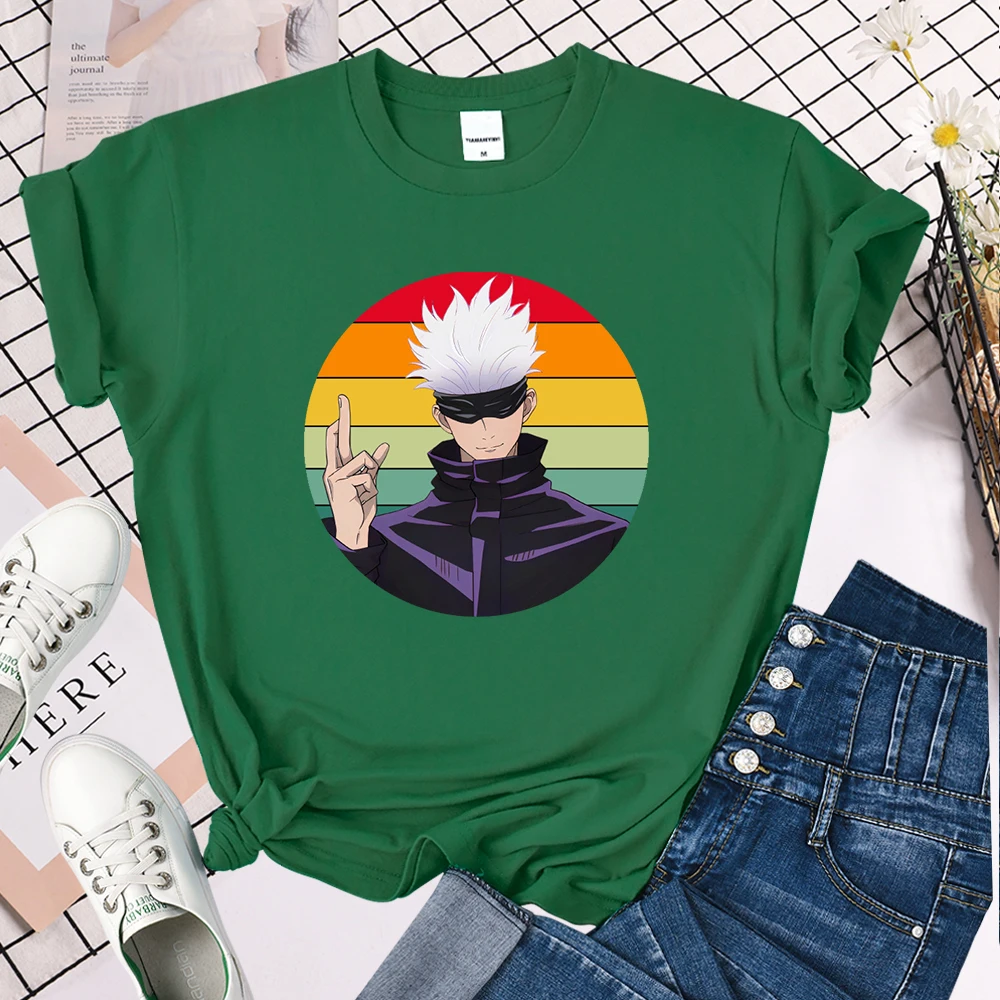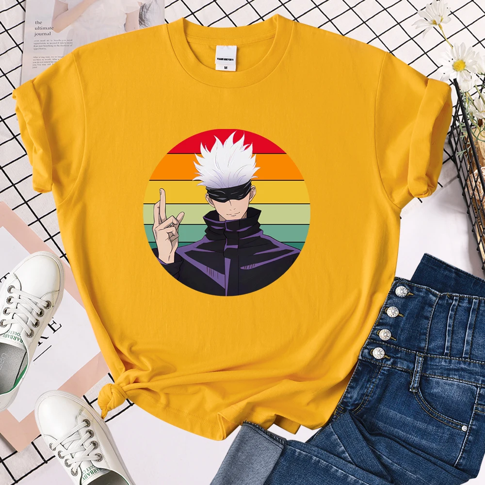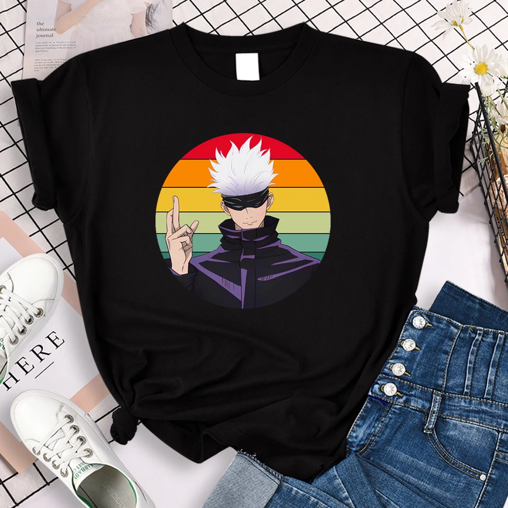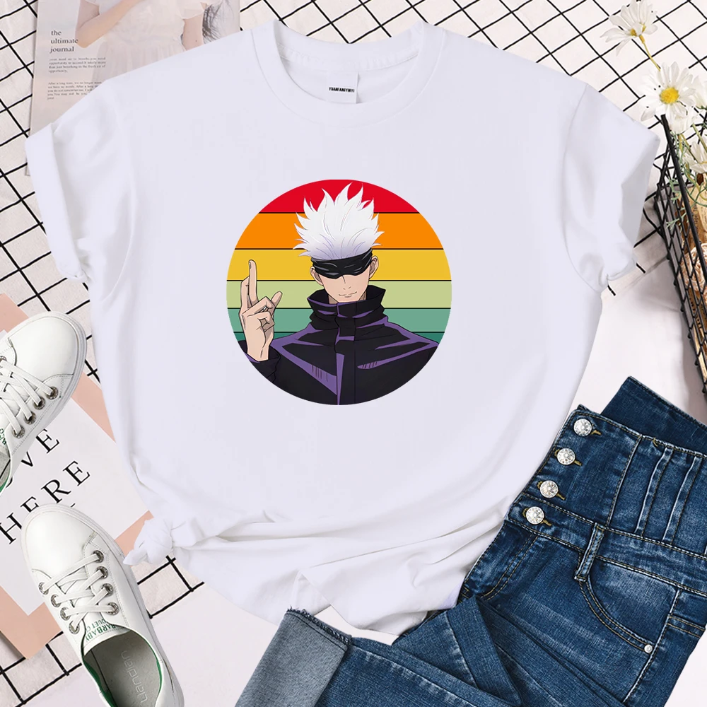 Jujutsu кайсен круглый графический принт Женская футболка 2021 летняя футболка в стиле Харадзюку, брендовые футболки для малышей, футболки в стиле хип-хоп, Свободная Женская футболок, Новое поступление