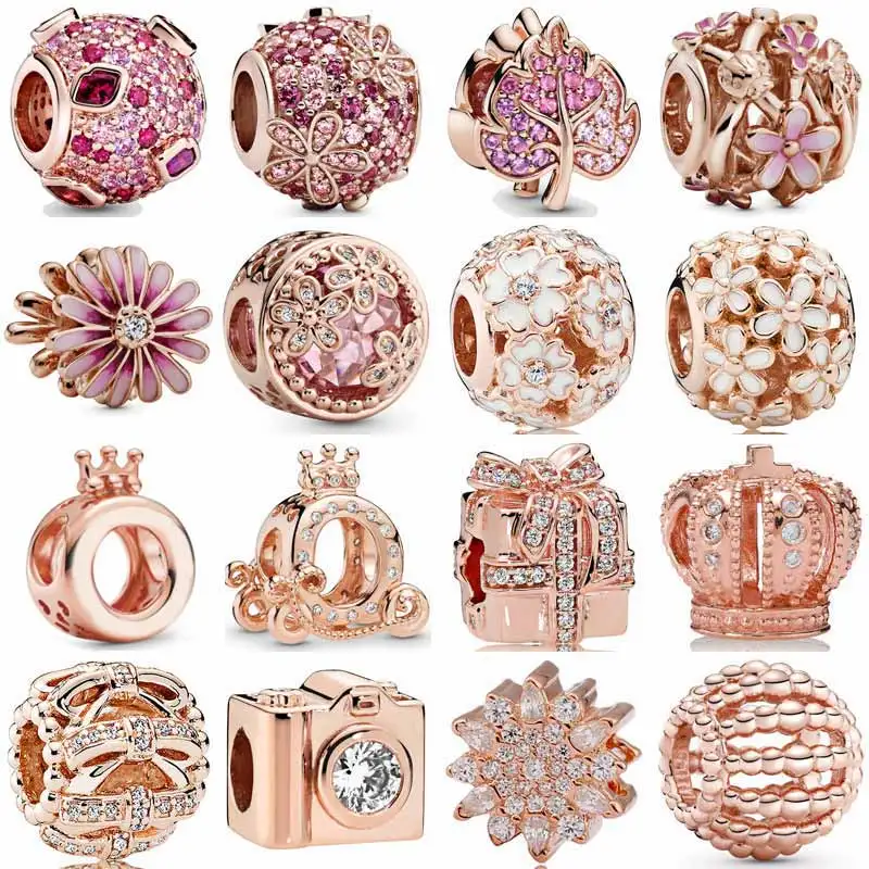 Роза Розовая маргаритка цветок лед сверкающие листья Тыква каретка Корона O очаровательный браслет модные ювелирные изделия