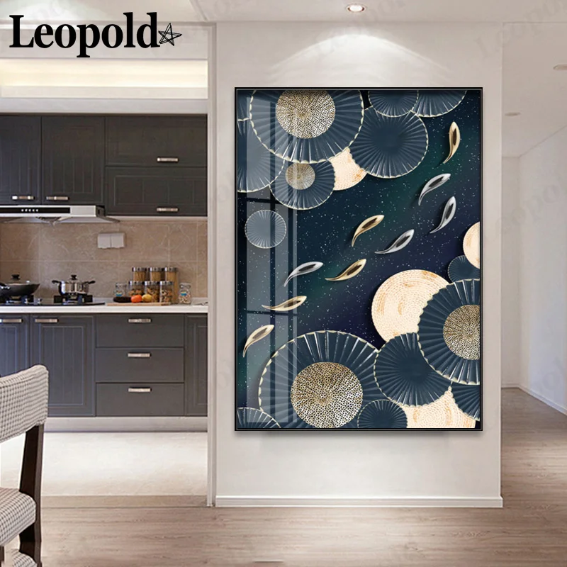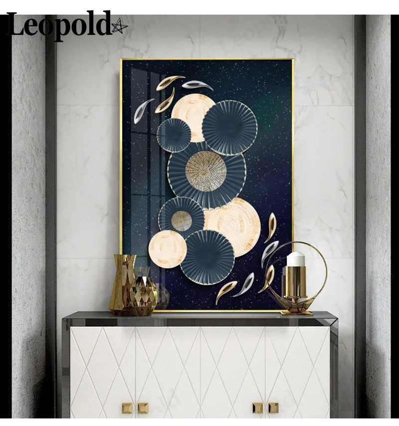Современный абстрактный геометрический круг холст постер Золотая Рыба школа темно-синяя алюминиевая фольга цветная Картина декор для гостиной