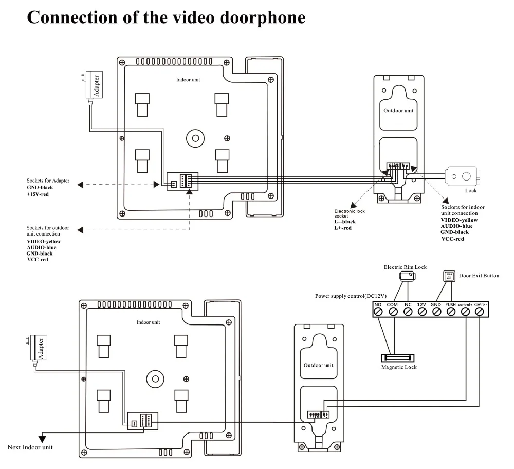 Этот Дверной телефон может работать, украшенное мозаикой из драгоценных камней, 12V электрический замок, таким образом, вы можете подключить электрический замок к этой системы. С помощью этой функции, вам не нужно идти к двери, чтобы разблокировать для вашего гостя, вам просто нужно нажать кнопку разблокировки на мониторе. Это принесет большое удобство для вас и членов вашей семьи.