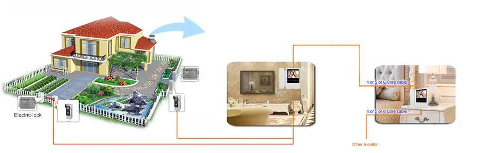 Эта дверная телефонная система может широко использоваться в виллах, офисах, частных домах и в других местах. Это не только система внутренней связи, но и домашняя система безопасности.