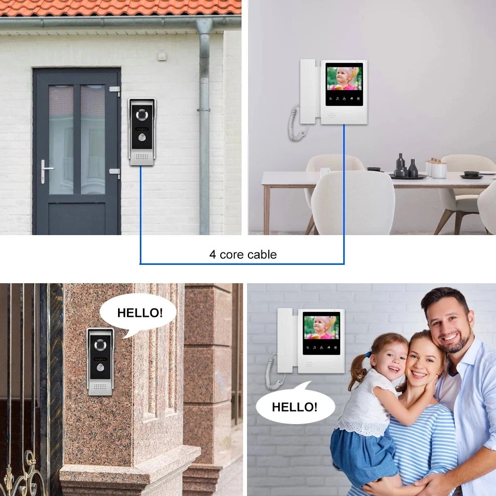 Дисплей изображение очень четкое с 4,3 ''с высоким разрешением цветной TFT ЖК-дисплей и ИК-камера. Четкое изображение, безусловно, удовлетворит ваши требования, 25 chord рингтонов могут быть переключены свободно, элегантно и честно звучание. Оба мелодии звонка и громкость могут регулироваться, могут удовлетворить оригинальные потребности вашего времени. Не нужно беспокоиться о том, что вы не услышите голос или не услышите его слишком громким.