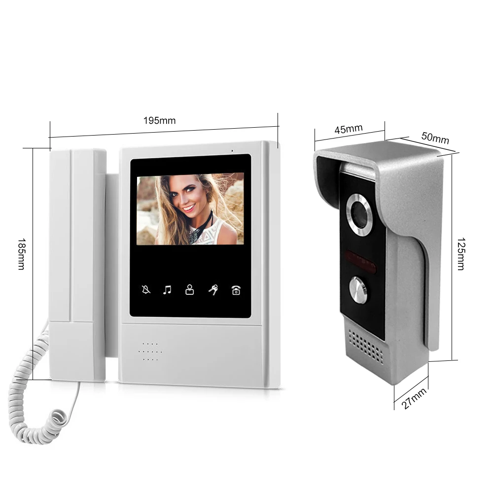 Красочный видеодомофон имеет выдающееся значение на рынке домофона и дверного звонка. Он поставляется полностью с полным набором инструментов для видеодомофонов, включая монитор безопасности, камеру, домофон и другие аксессуары. С 4,3 ''с высоким разрешением цветной TFT ЖК-дисплей и ИК-камера, изображение очень хорошо видно даже в ночное время.