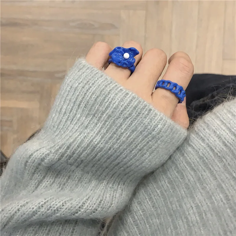 AOMU Корея, панк стиль, ручная работа, эмаль синяя мгновенной проявки Macaroon кольцо милые жемчужные металлическая открытие регулировочного кольца для Для женщин ювелирные изделия вечерние подарки