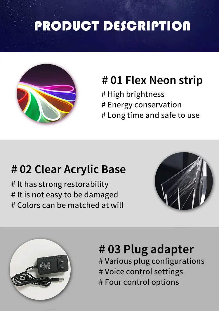ХарактеристикиLed Flex Transparent Acrylic Neon Sign