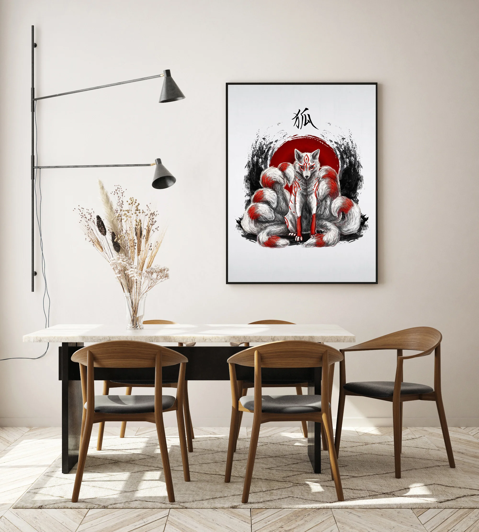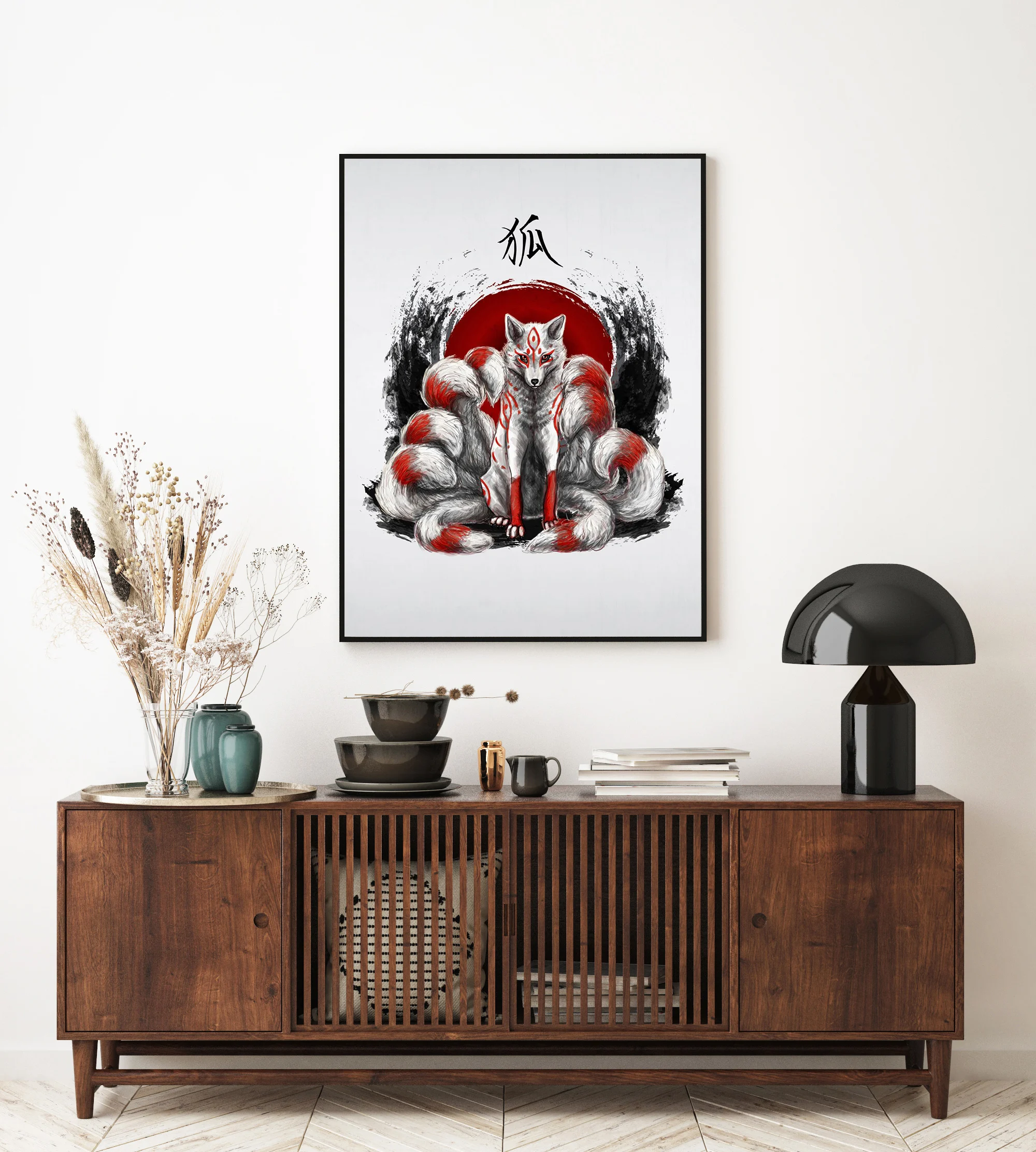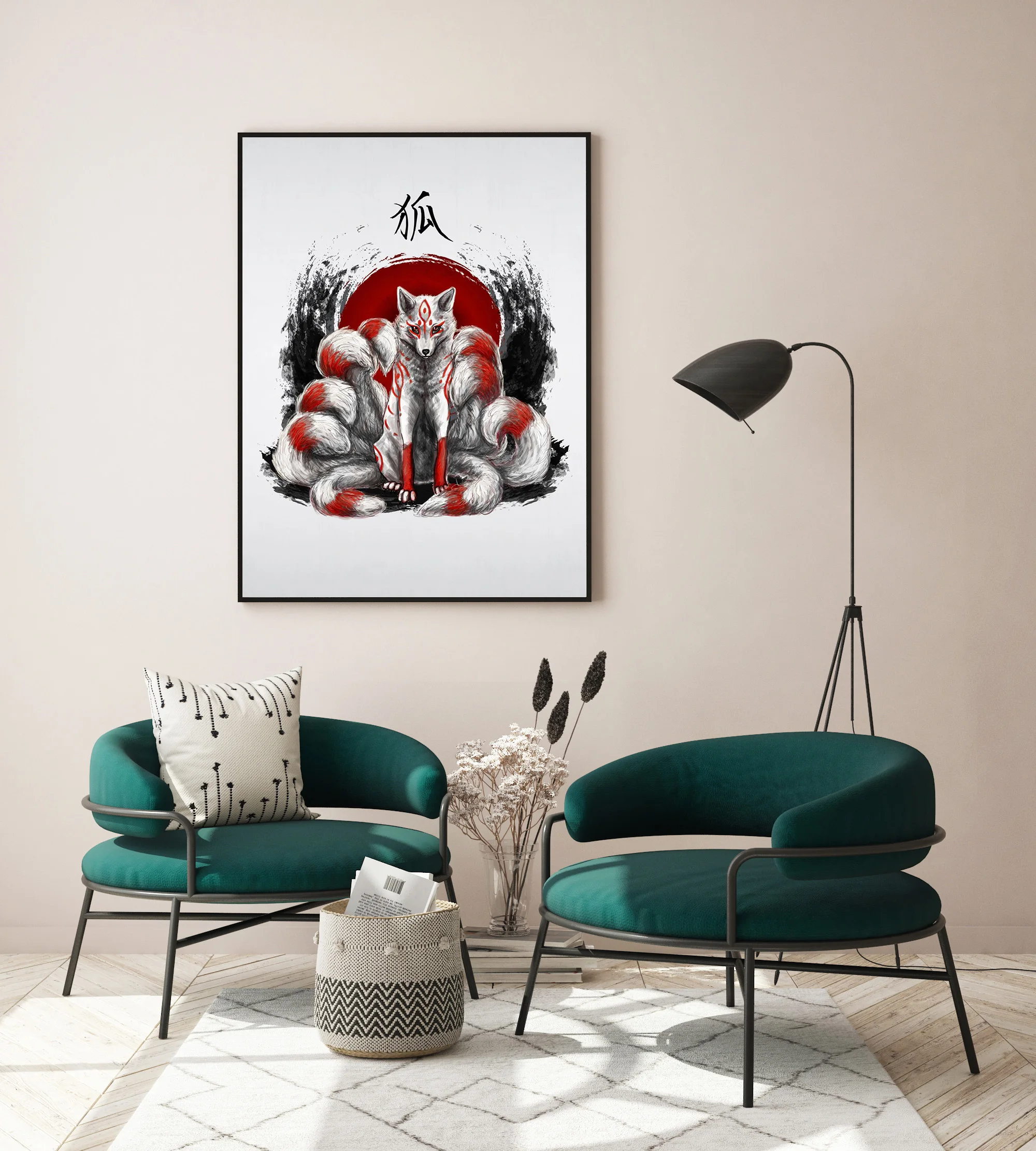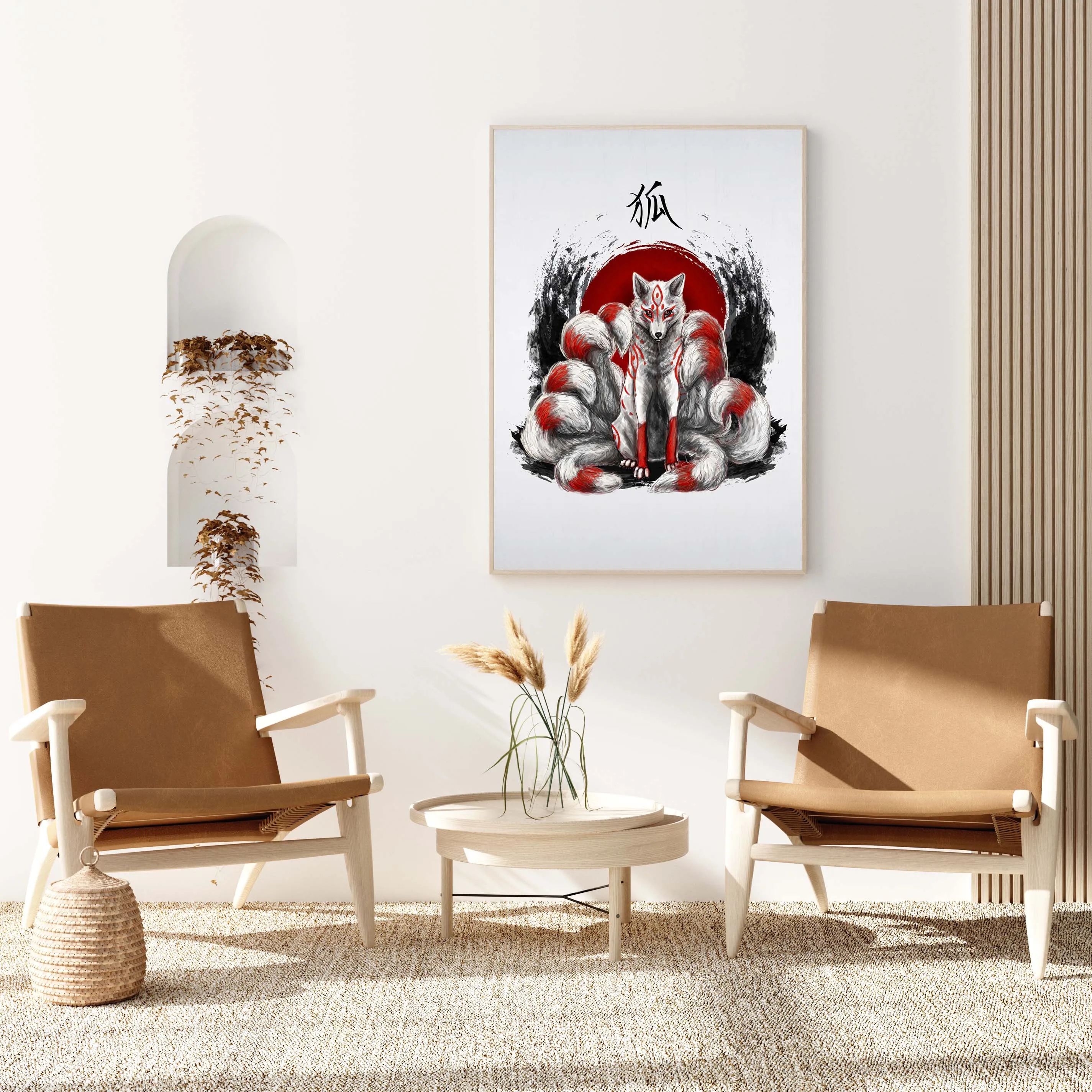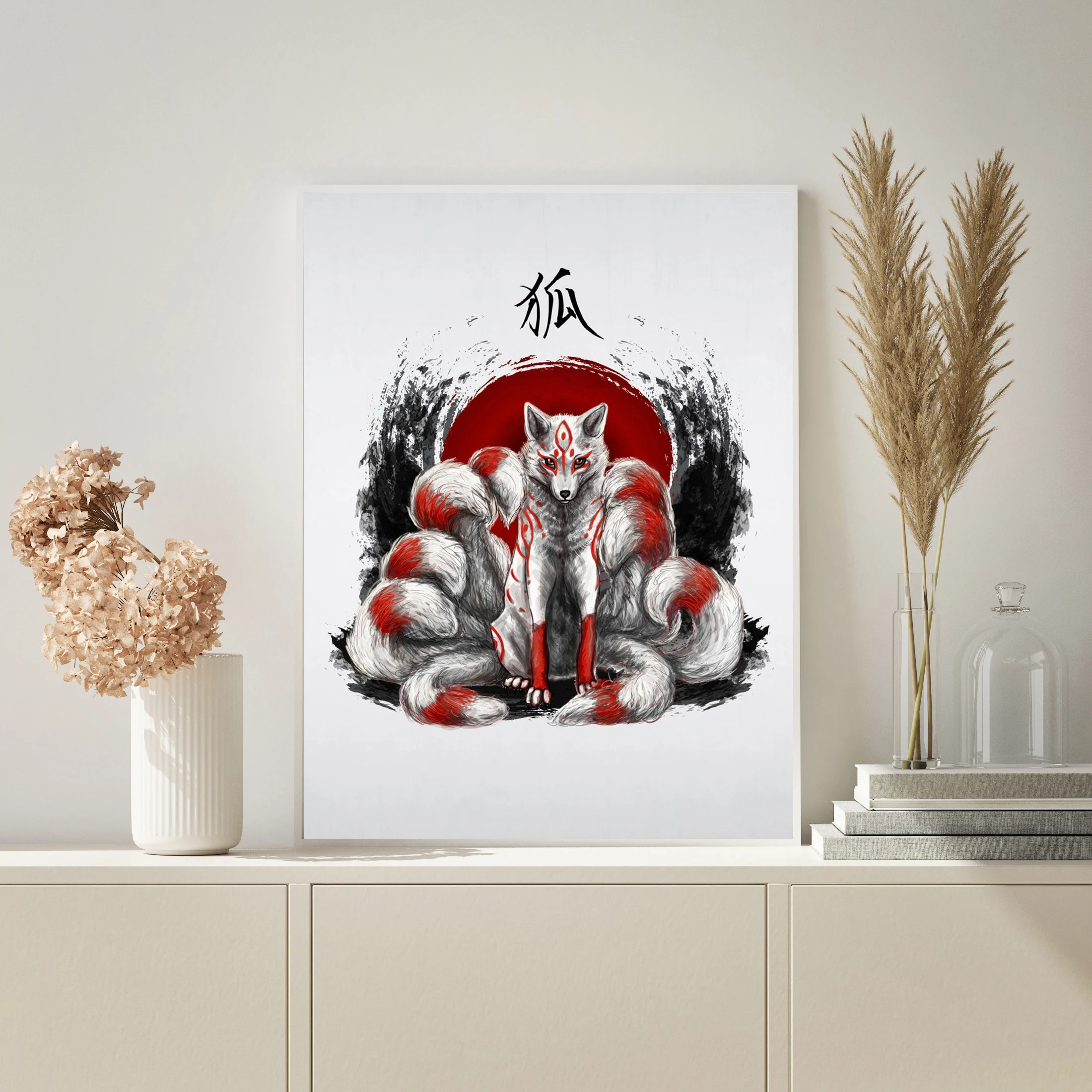 Настенная Картина на холсте с животными для гостиной, HD-принты, девять хвостов, лиса, китсун, картины, плакат, современный модульный домашний декор в рамке