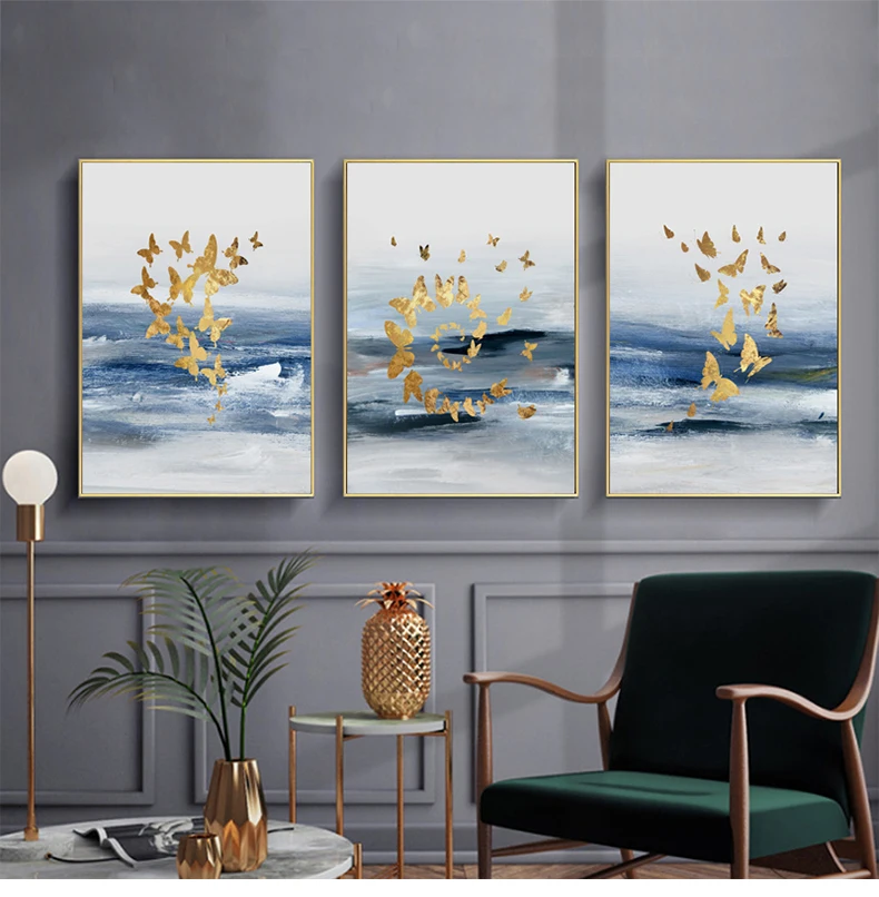 Современный постер золотисто-серого цвета Картина на холсте, украше...