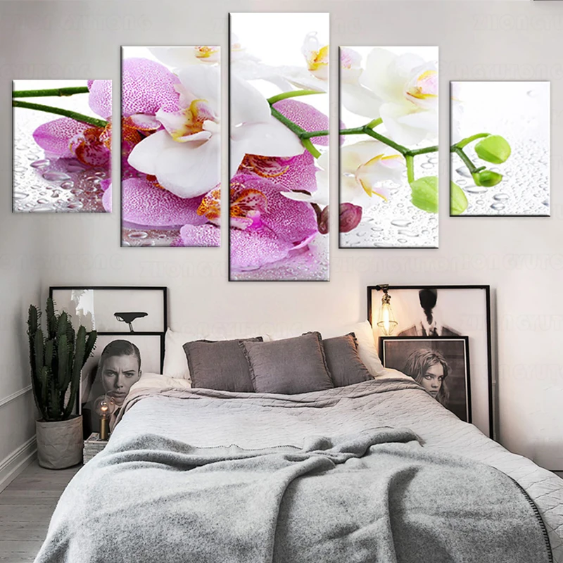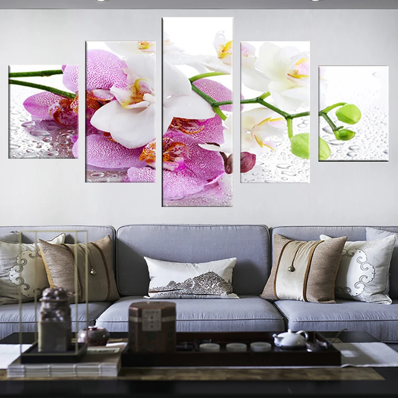 Домашняя рама, современные плакаты с изображением красивой орхидеи, 5 панелей, модульное украшение для гостиной, настенная живопись на холсте