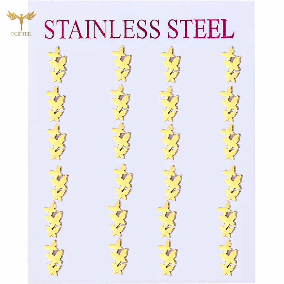 Женские серьги-гвоздики в форме бабочек, из нержавеющей стали
