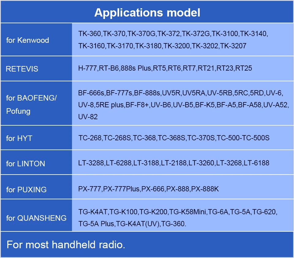 1. Высокое качество и высокое усиление штыревой антенны; 3.2dBi (VHF)/5.6dBi (UHF); Увеличить диапазон вашего двухстороннего радио