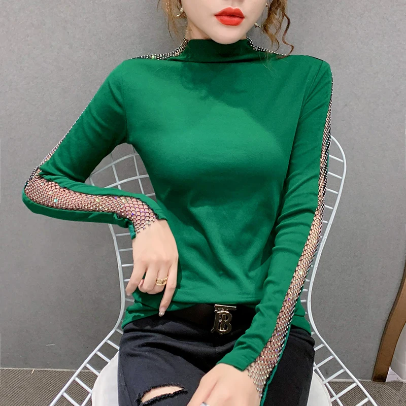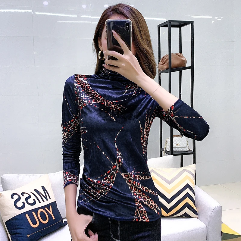 Осенняя женская блузка, Модные Цветные пуловеры с высоким воротнико...