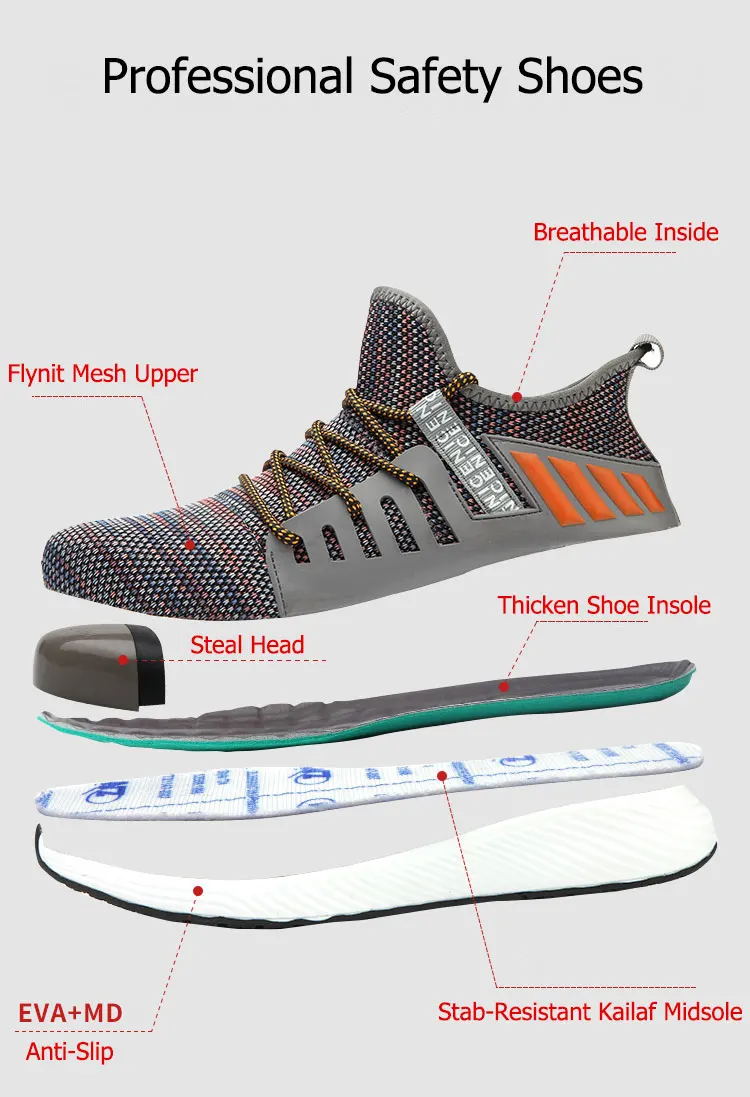 Неразрушаемые мужские защитные рабочие ботинки со стальным носком непробиваемые Легкие дышащие кроссовки Прямая поставка