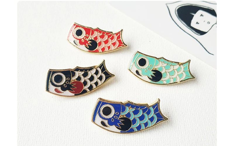Японские Броши Koi, милые Мультяшные эмалированные булавки с рыбками на лацкан, для сумки, бейджи металлические украшения, декоративная булавка, подарок для детей