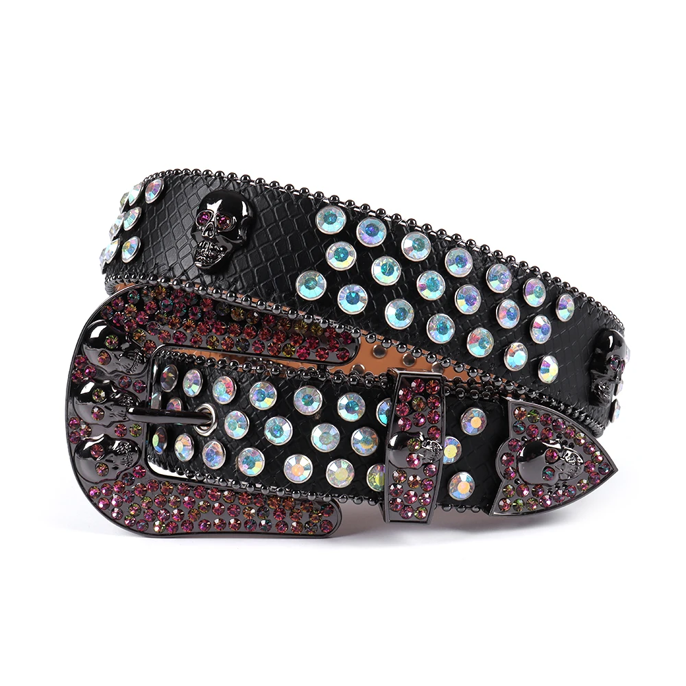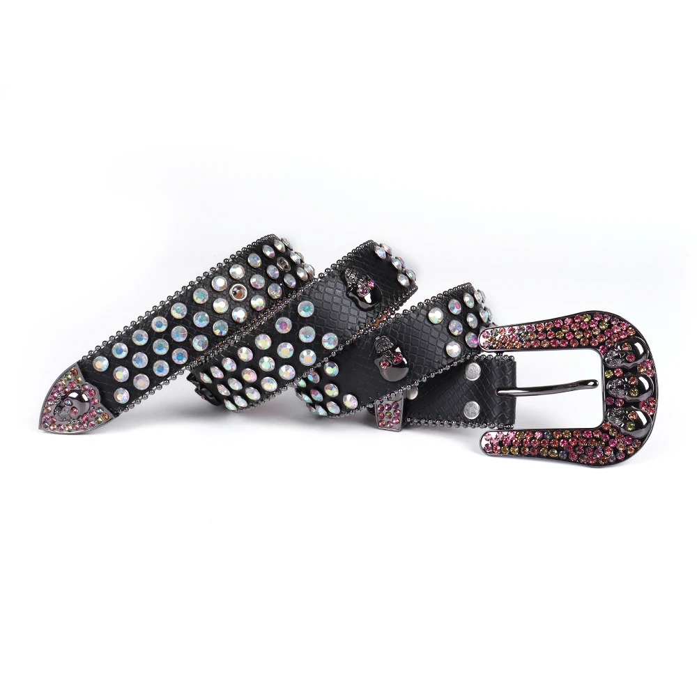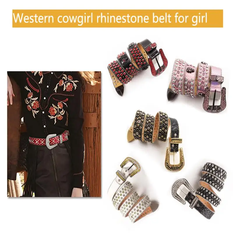 Ремень мужской из искусственной кожи, со стразами, в ковбойском стиле, для джинсов