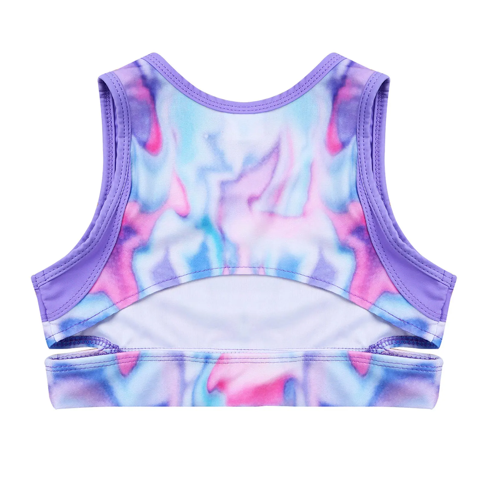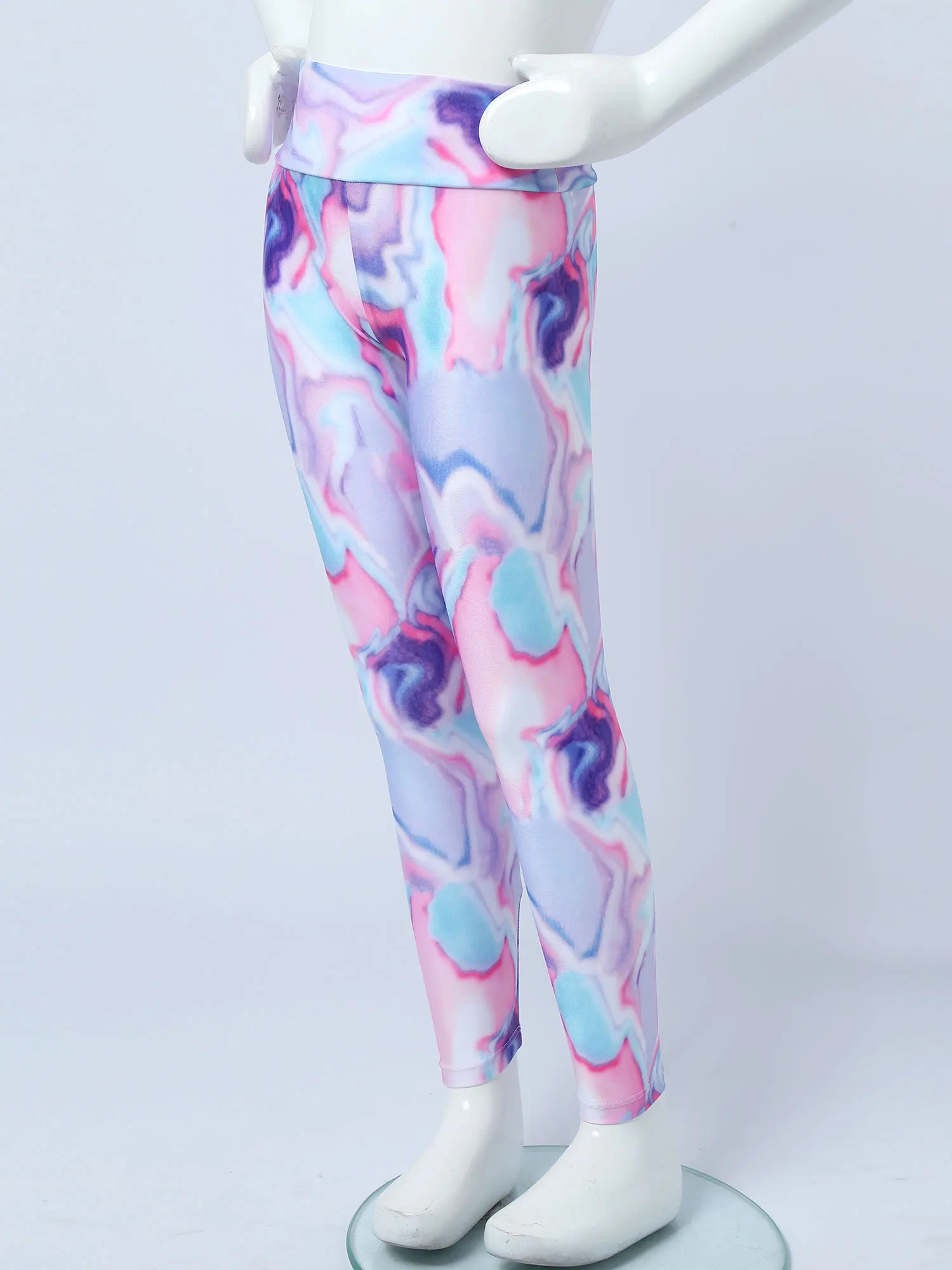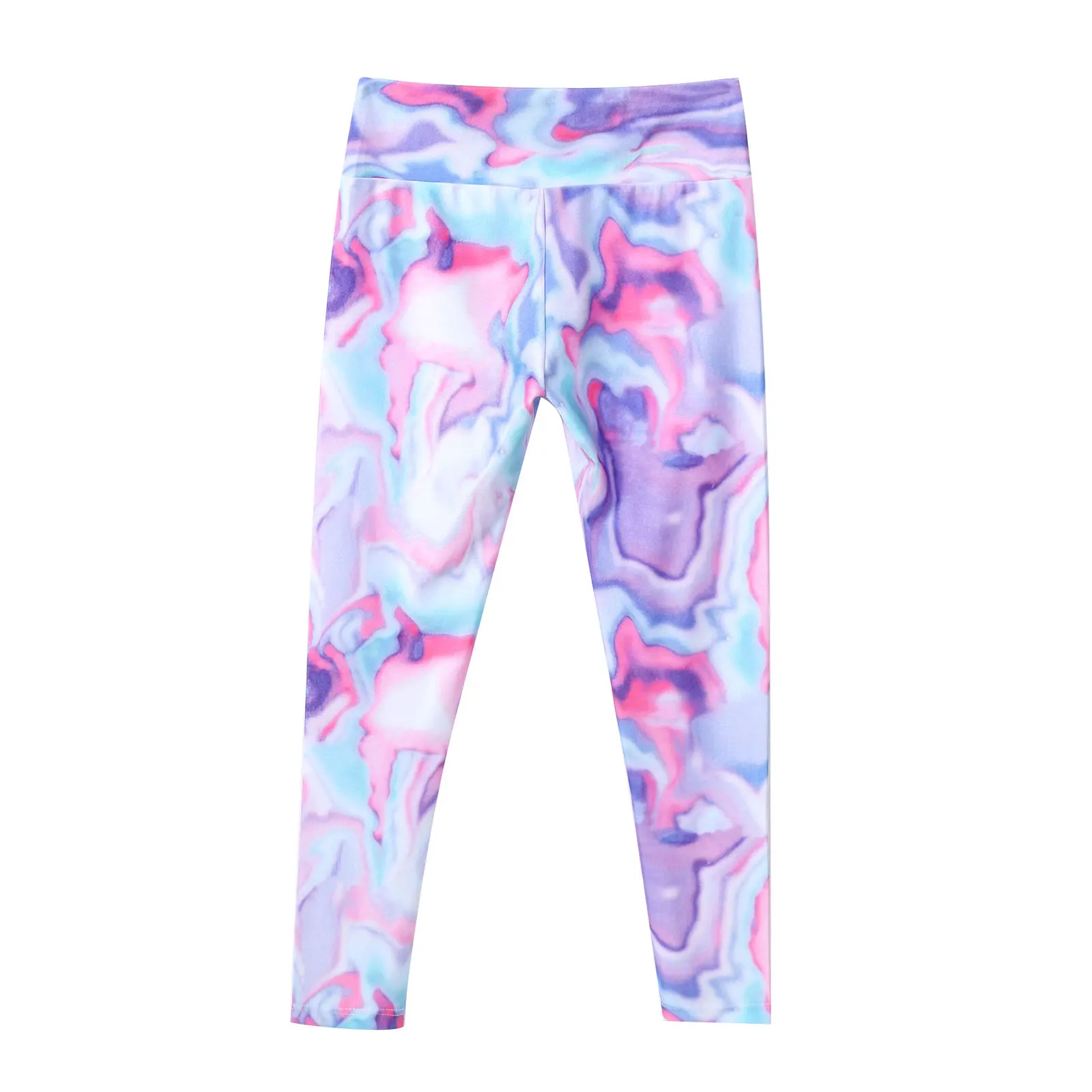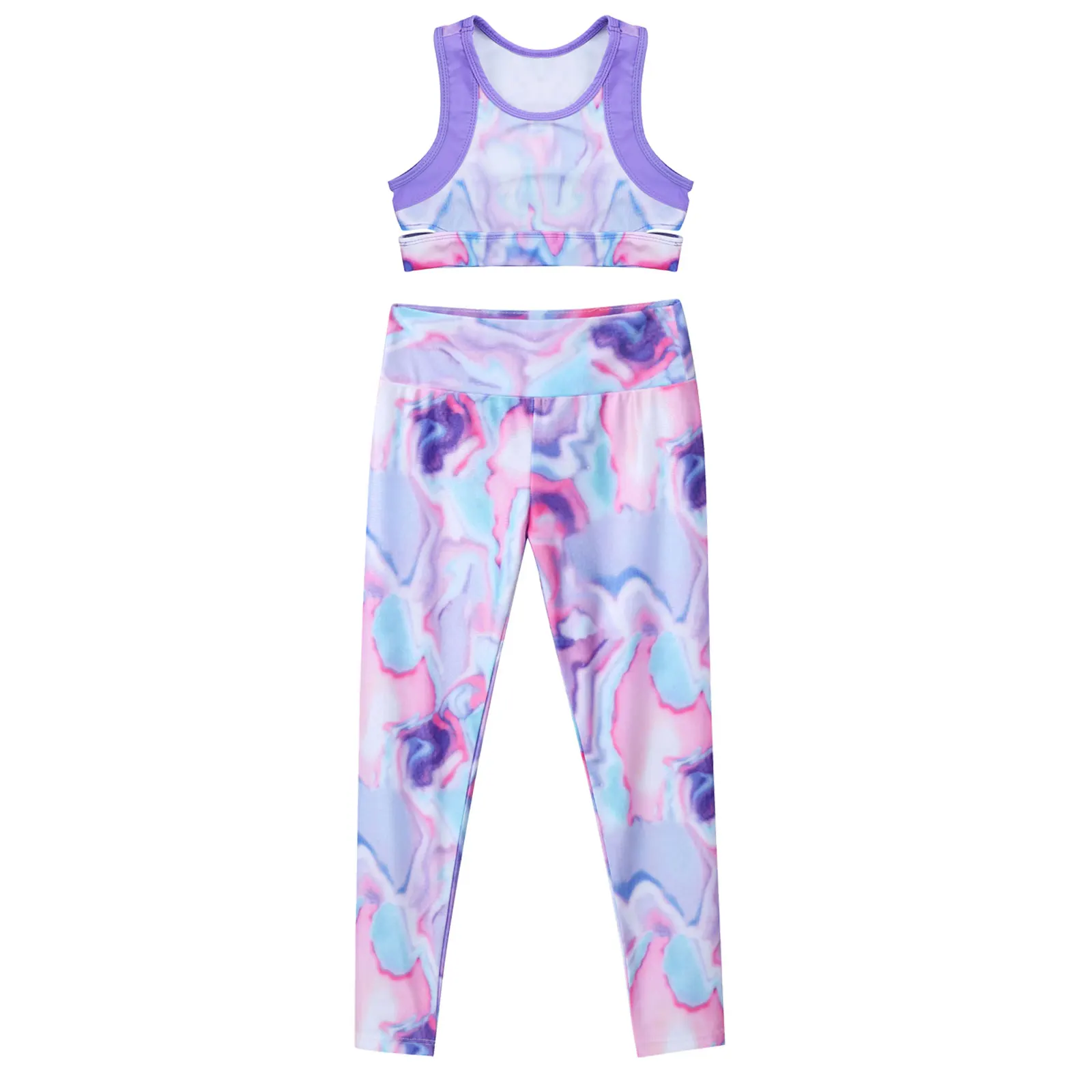 От 4 до 14 лет цветные спортивные комплекты для девочек Одежда для гимнастики и танцев укороченные топы с принтом тай-дай спортивные Леггинсы для йоги бега и тренировок