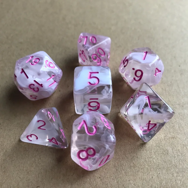 7 шт./лот, новый набор игральных костей D4 D6 D8 D10 D10 % D12 D20, красочные прозрачные многогранные кости для настольной игры, набор игральных костей
