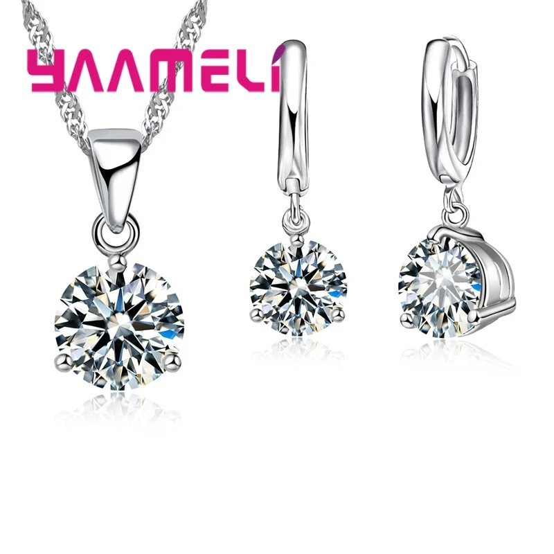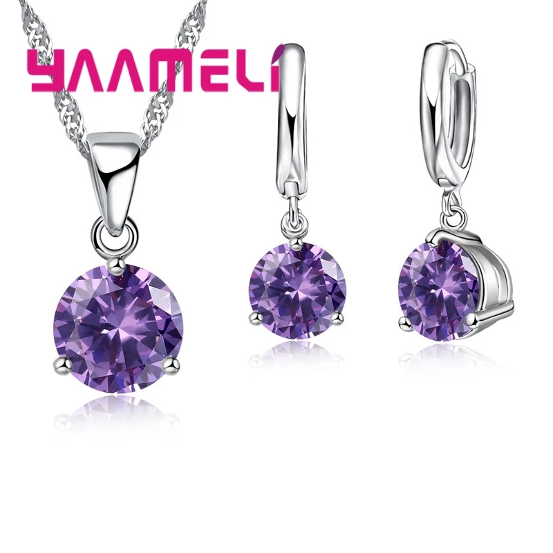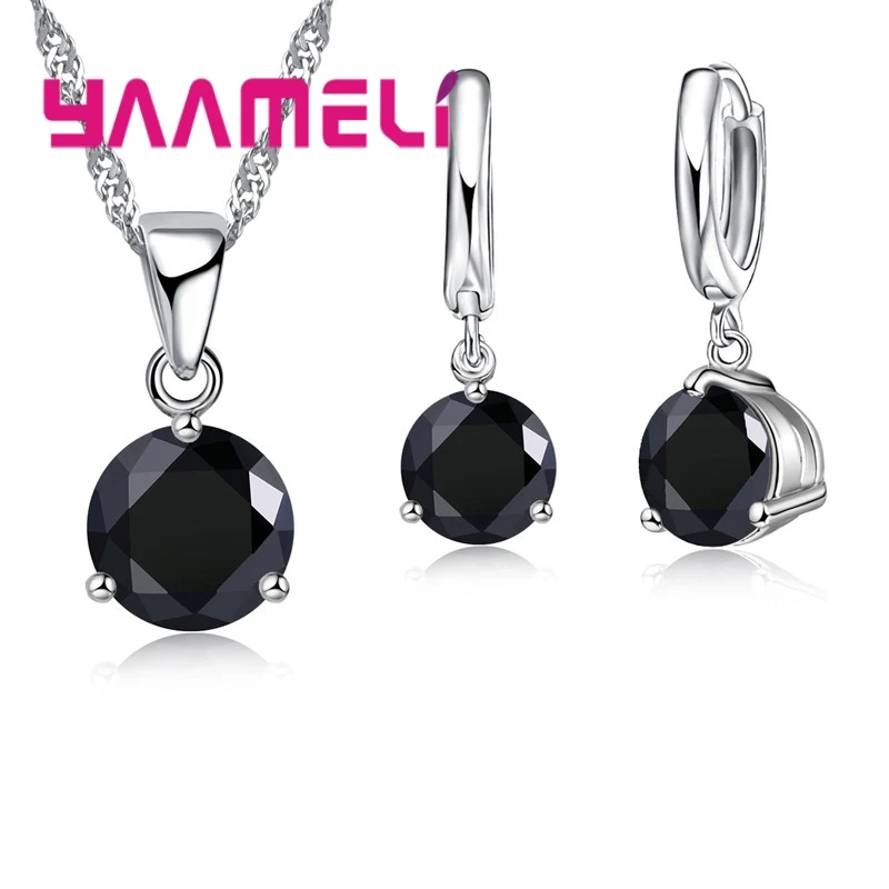 Цепочка с подвеской и серьги из серебра 925 пробы, 8 цветов