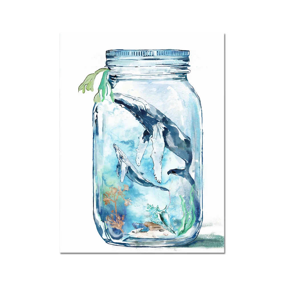 Настенная картина с китами, постер на холсте для детской комнаты, спальни, ванной, гостиной, украшение для дома