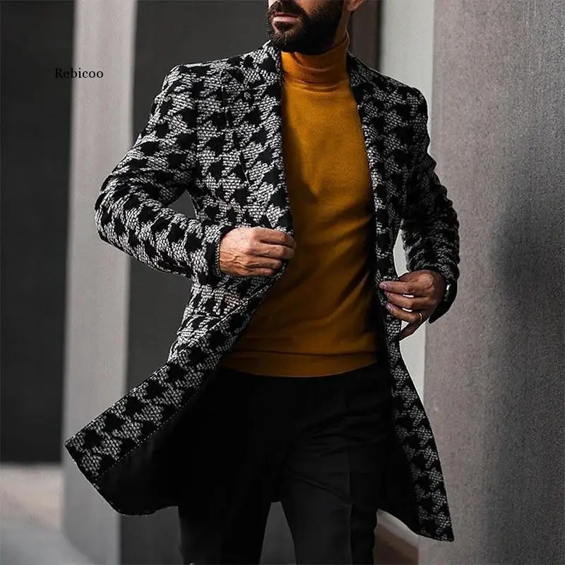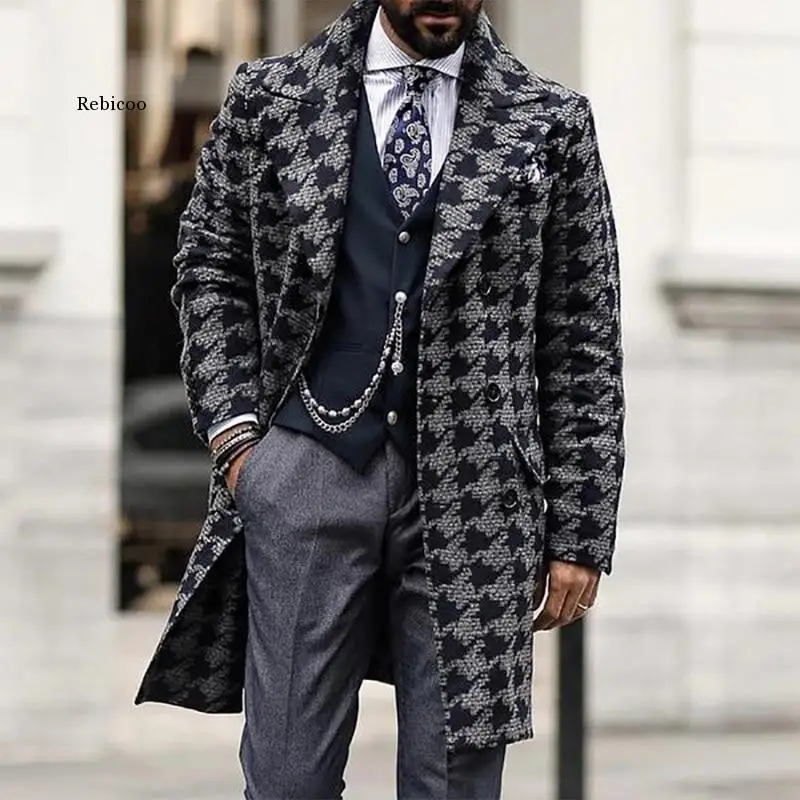 Мужское длинное шерстяное пальто, повседневное двубортное мужское шерстяное пальто, зимняя куртка из твида, мужской Тренч