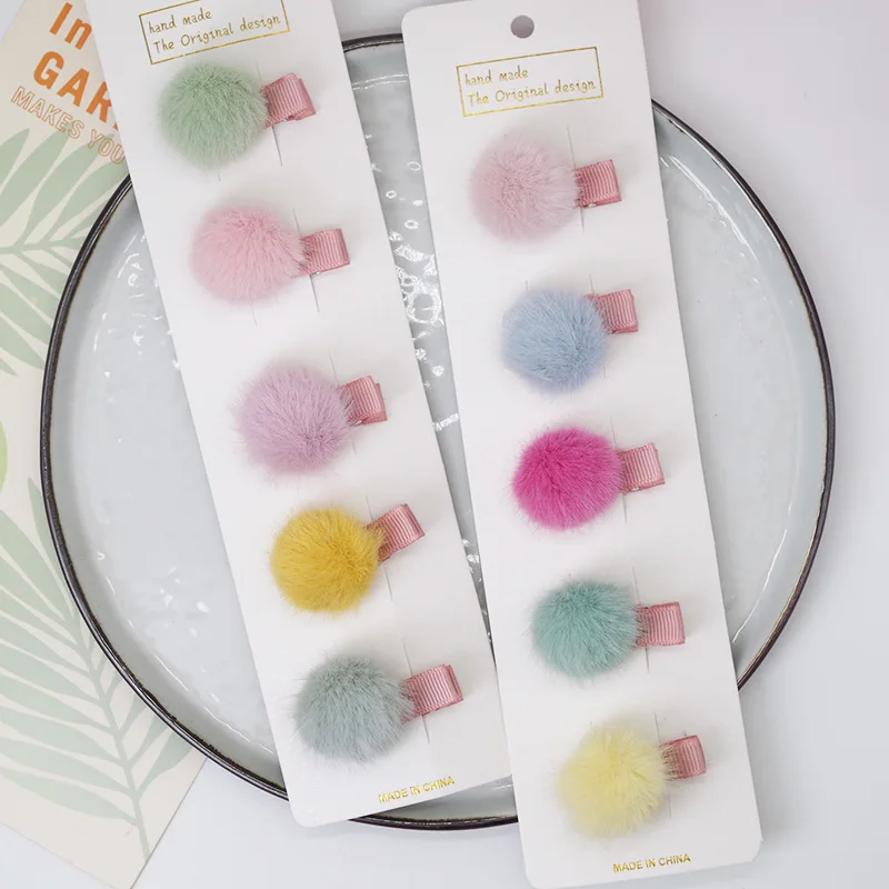 5 шт.компл. милые заколки для волос для девочек, маленькие милые мягкие Меховые помпоны, мини-заколки для волос с шариками, детские головные уборы, Детские аксессуары для волос