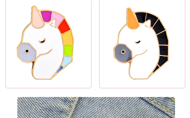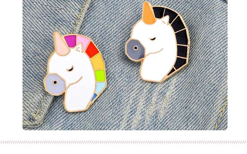 В виде единорога из мультфильма головы броши в виде комиксов милой пони эмаль на булавке на джинсовые рубашки и куртки значки для детей с металлическими кнопками, модное ювелирное изделие