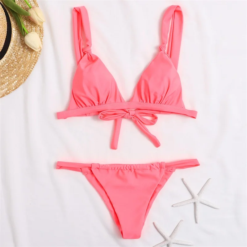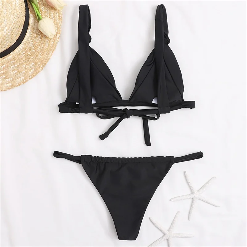 Однотонные бикини, сексуальный купальный костюм на шнуровке, женски...