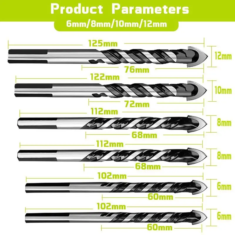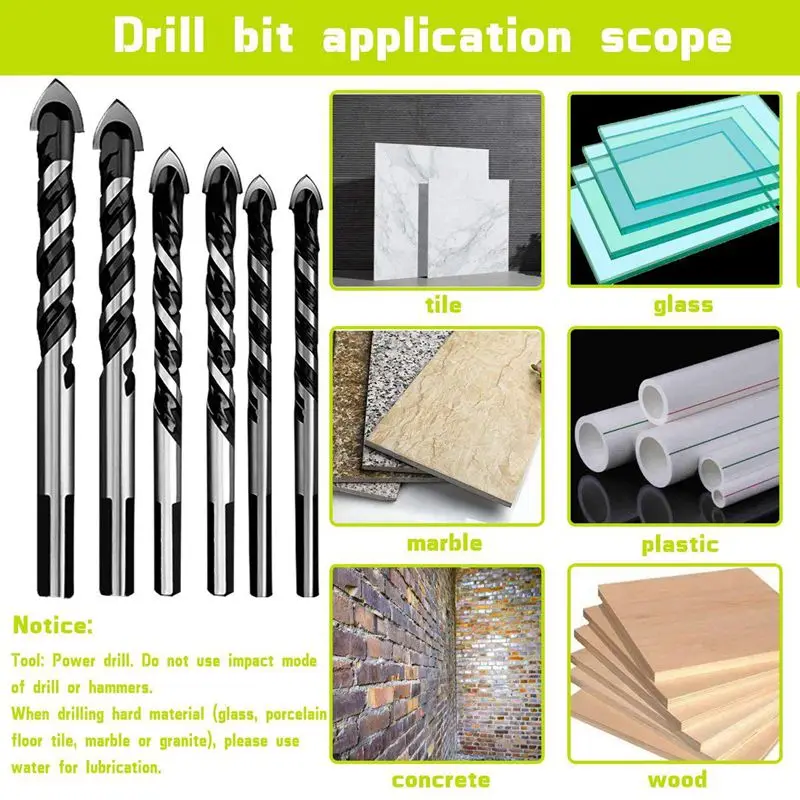 6 шт. сверла для керамической плитки, набор сверл для каменной кладки для стекла, кирпича, бетона, дерева, наконечник из карбида вольфрама для настенного зеркала и Ce