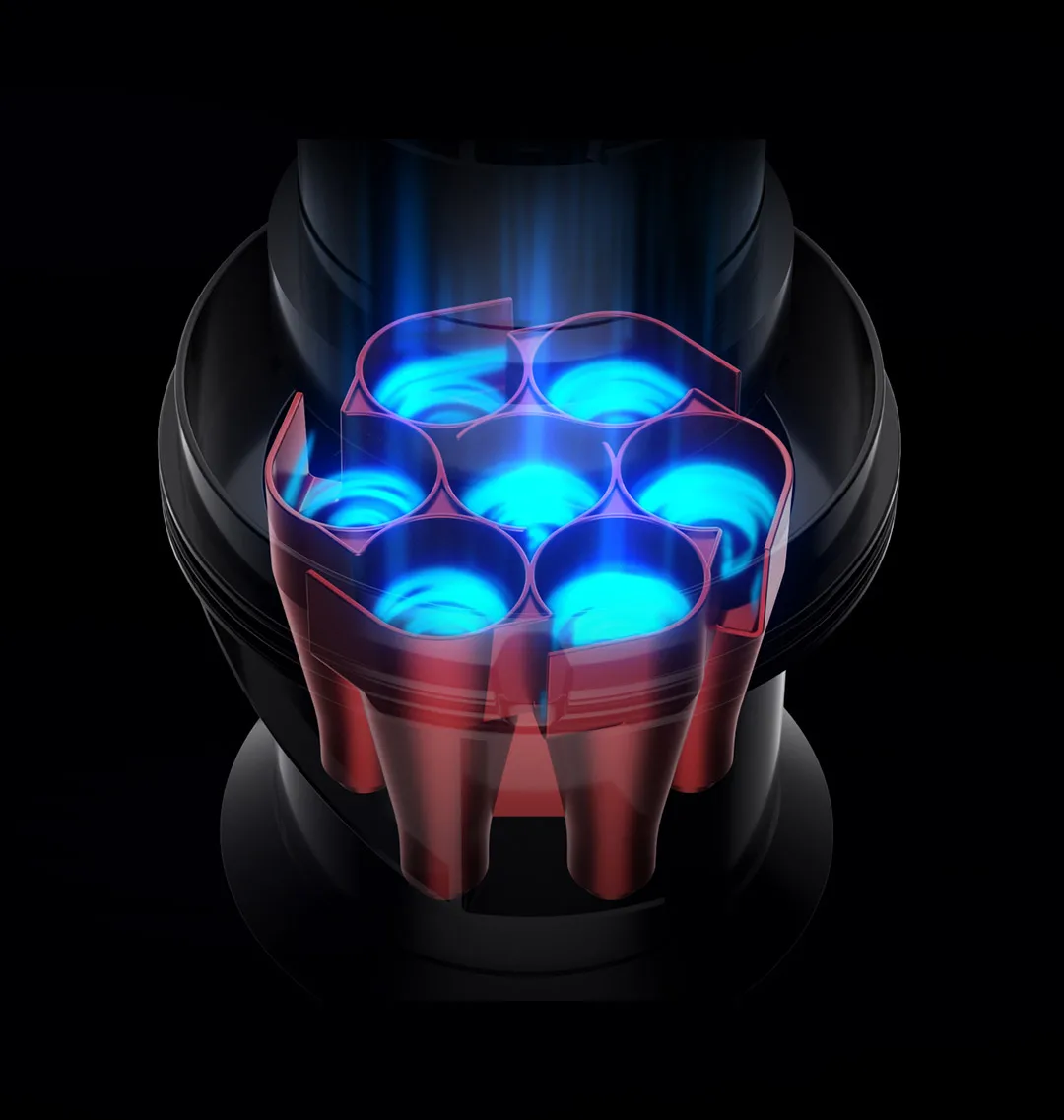 Shunzo самостоятельно разработала трехфазный бесщеточный двигатель с мощностью до 125000 об/мин. Отличная производительность приносит супер всасывание 150AW, и он легко высасывает глубокие пятна, не оставляя негде спрятать пыль.