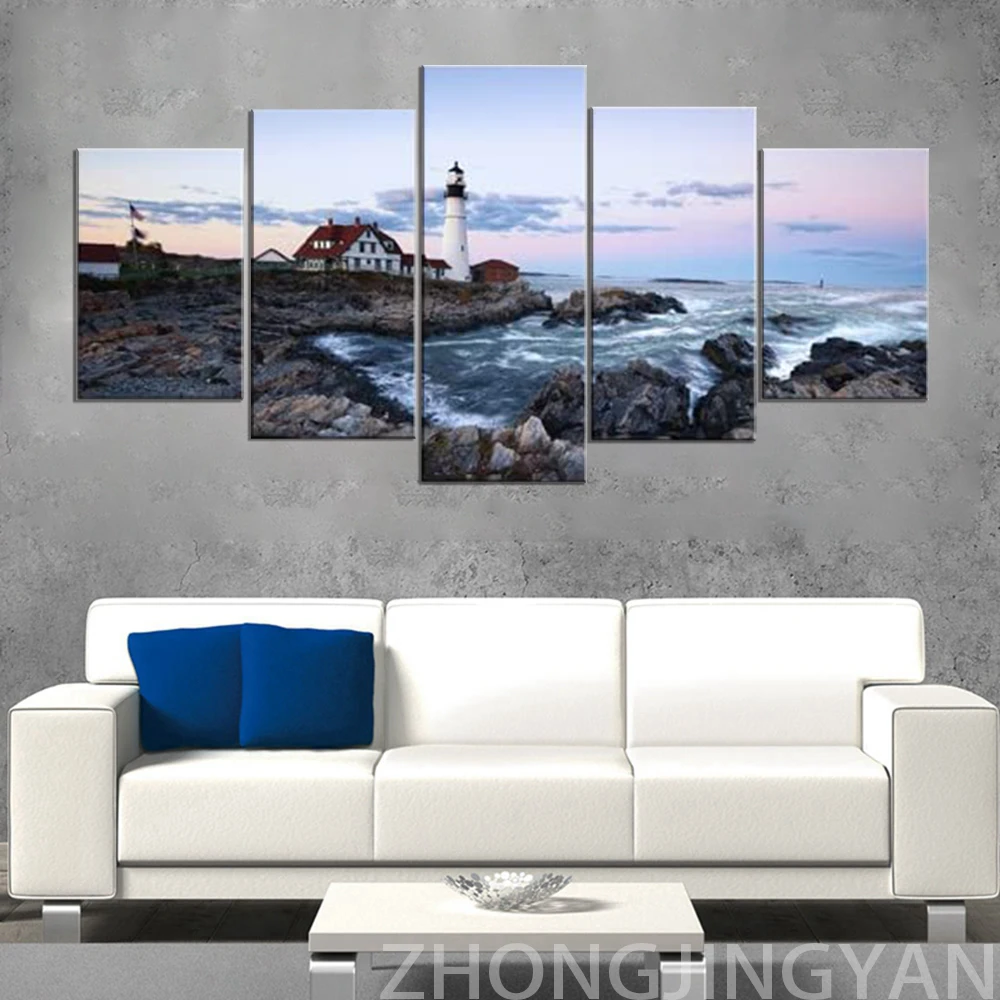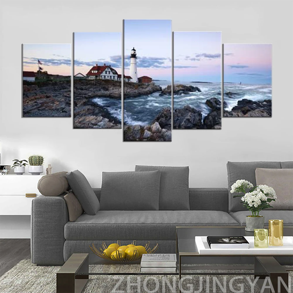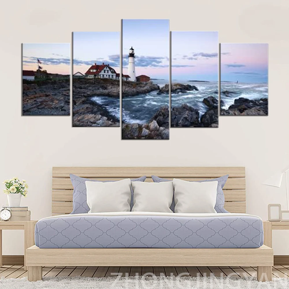 Портланд Маяк 5 шт. морской холст Картины Wall Art экстра большие современные морские, Одежда для пляжа, печать на холсте фотографии работ