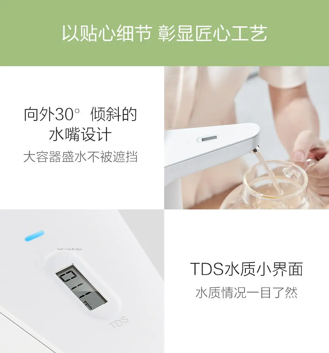 Автоматический водяной насос TDS имеет функцию обнаружения качества воды для отображения трех типов примесей в воде в реальном времени: растворимых солей, ионной органики, ионов тяжелых металлов. Перед питьем вы можете четко понять качество воды, безопасно пить воду и вести здоровый образ жизни.
