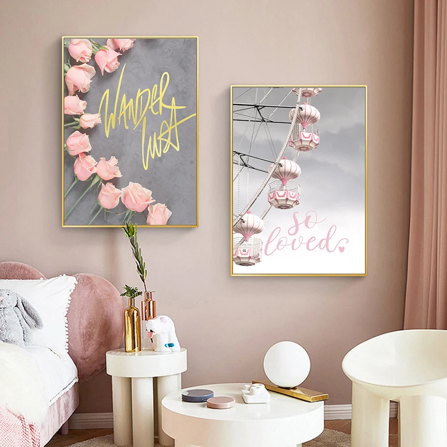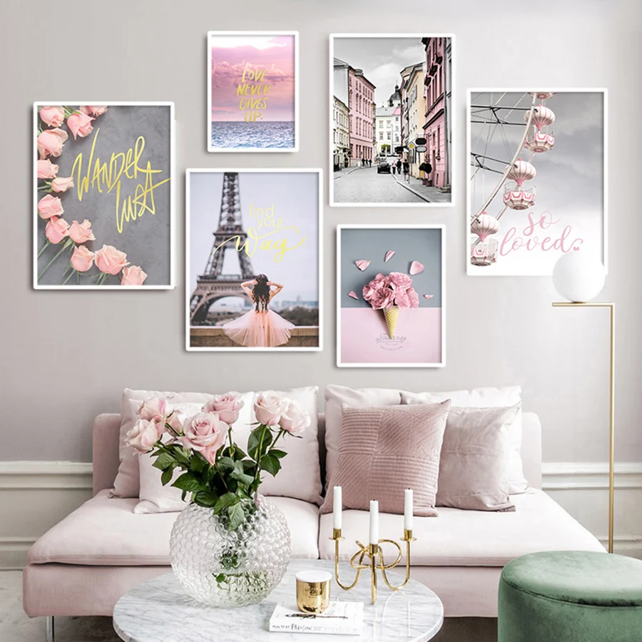 Настенная картина в скандинавском стиле, настенный постер розового ...