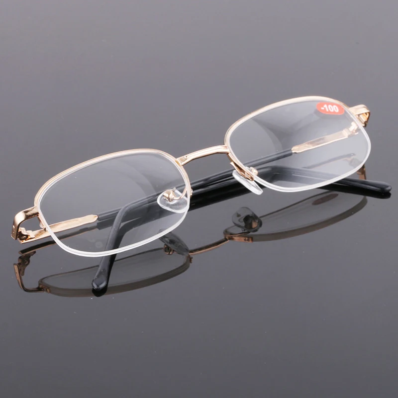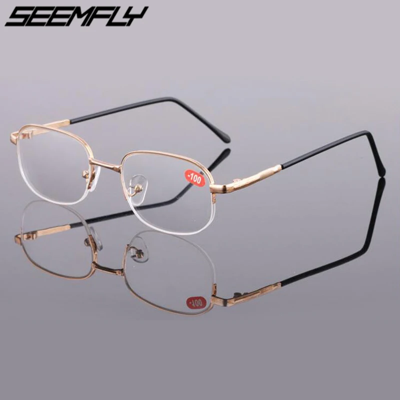 Seemfly -1-1,5-2-2,5-3-3,5-4 металлический корпус с плоскими стеклами и половинной рамкой готовой близорукость очки обувь для мужчин и женщин; Обувь для деловой очки для близоруких