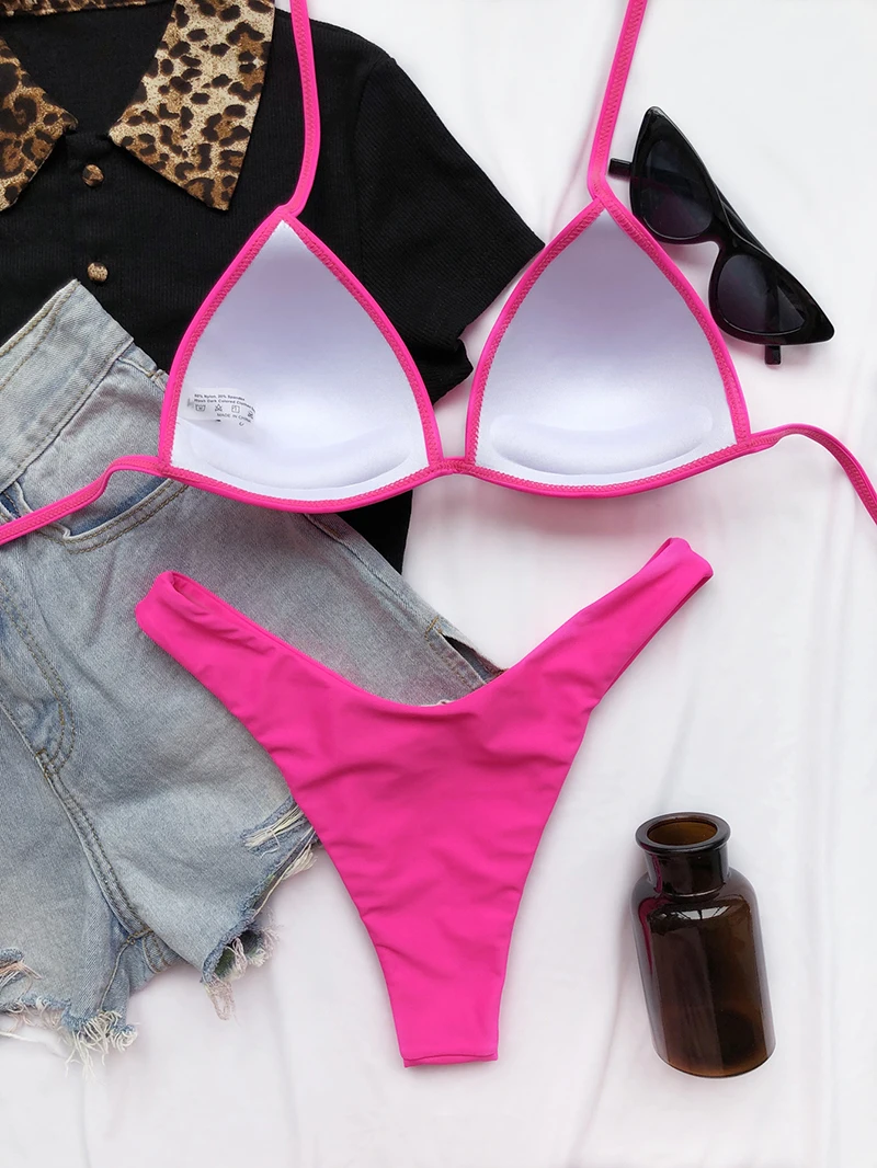 2021 сексуальный однотонный купальник, женский бикини, купальники с пуш-ап, комплект бикини из двух частей, Бразильский купальный костюм, бикини для женщин