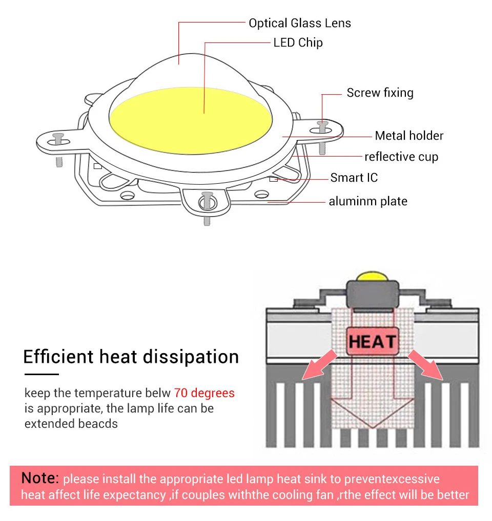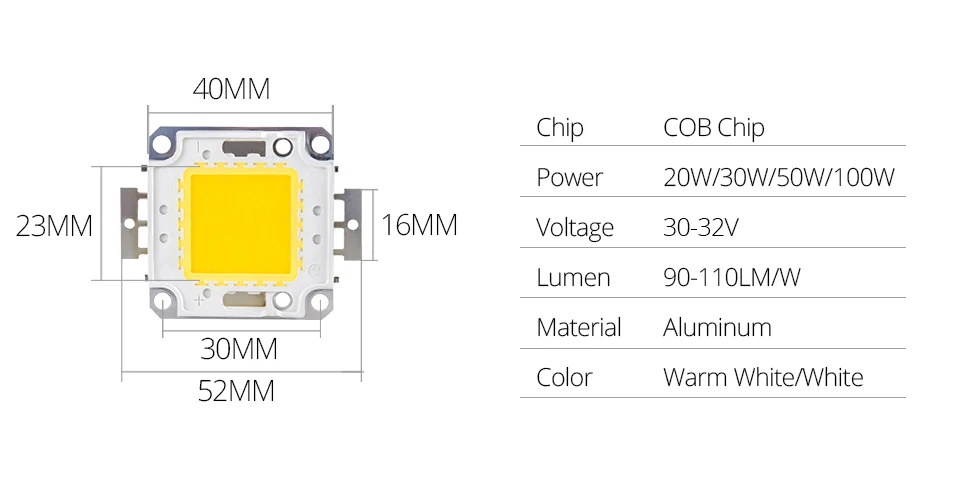 Светодиодный чип Cob 30-32 В, 100 Вт, 50 Вт, 30 Вт, 20 Вт, светодиодный чип с диодами 60, 120 градусов, стеклянный линзы коллиматор отражатель, фиксированный кронштейн