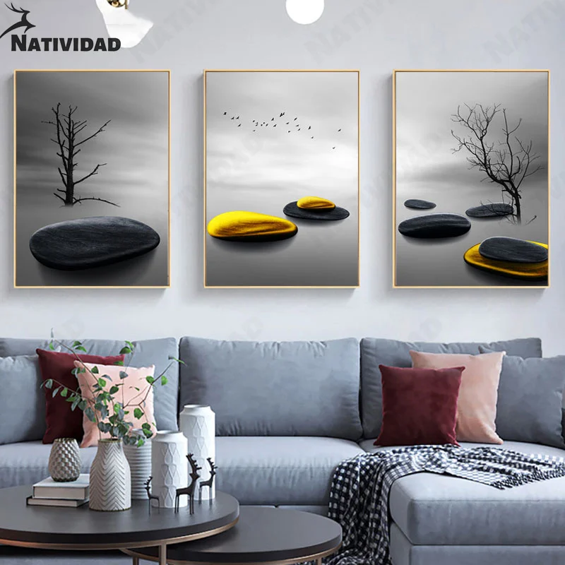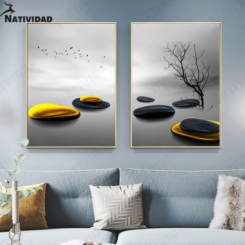 Современный минимализм черный фон позолоченный камень фигурка мода Мужская спальня гостиная украшение дома настенные постеры