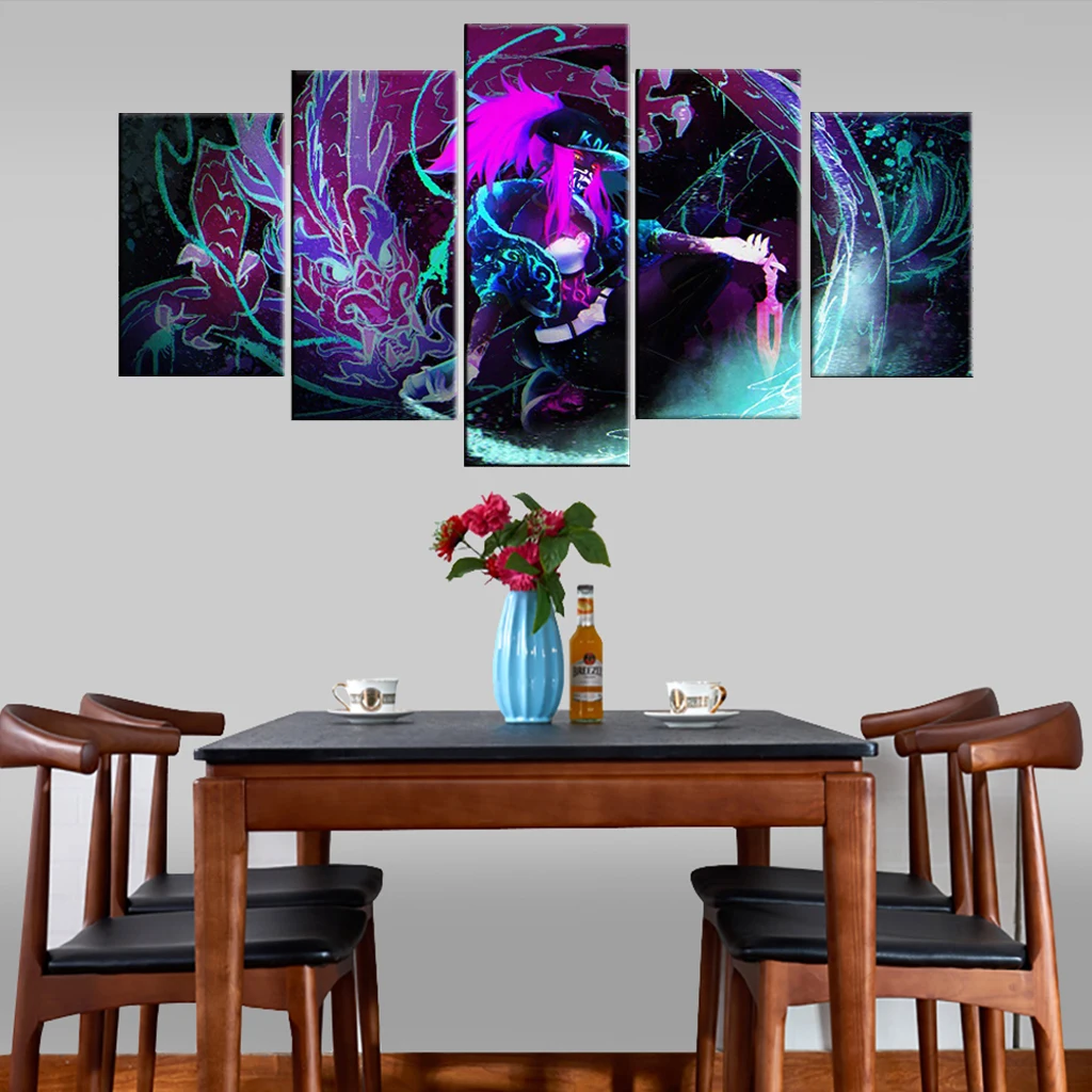 Kda Evelynn картина 5 шт. игра Лига Легенд большой плакат современный холст печать ТИП Модульная картина домашний декор настенное искусство
