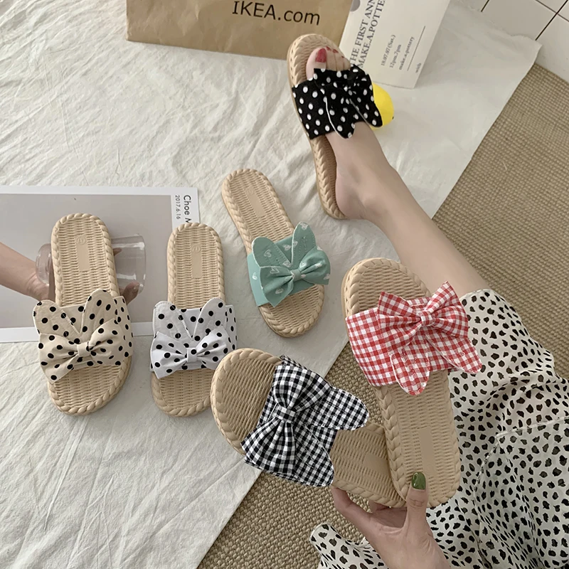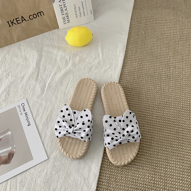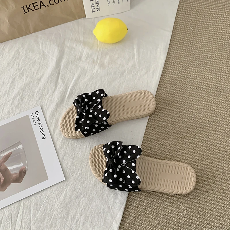 Новинка 2021 года; Летние женские шлепанцы с бантом; Открытые сандалии с открытым носком; Цвет черный, белый; Пляжная обувь с острым носком; Модная удобная обувь; Большие размеры 40