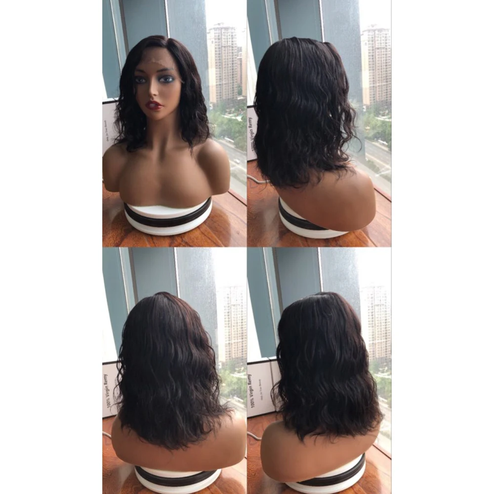 Парик из перуанских человеческих волос, с боковой частью, с короткими волосами