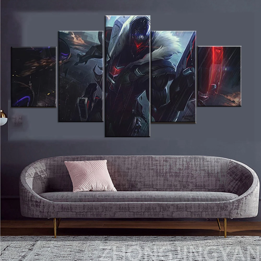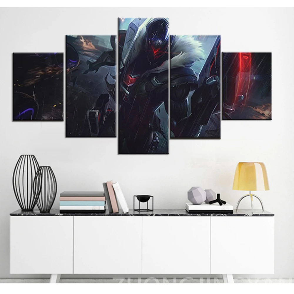 5 панелей, LOL League of Legends Khada Jhin, игра, холст, печатная живопись для гостиной, настенное искусство, домашний декор, HD картина, плакат
