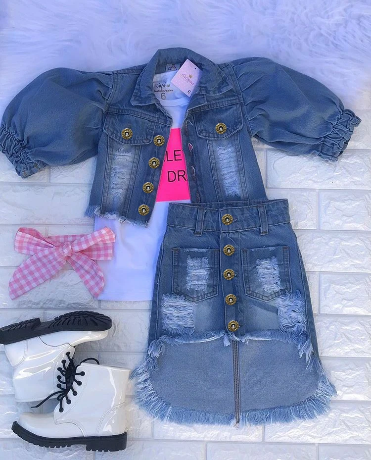 От 1 до 6 лет модные Одежда для новорожденных девочек, комплекты синего джинсового цвета с длинными пышными рукавами, однобортная, с круглой горловиной, жaкeт вeрх + карандаш юбки, 2 вещи в комплекте