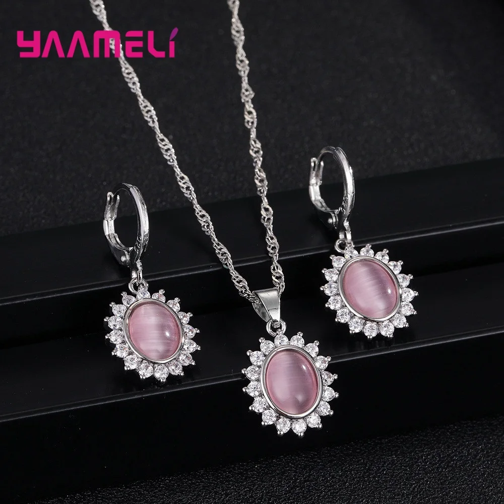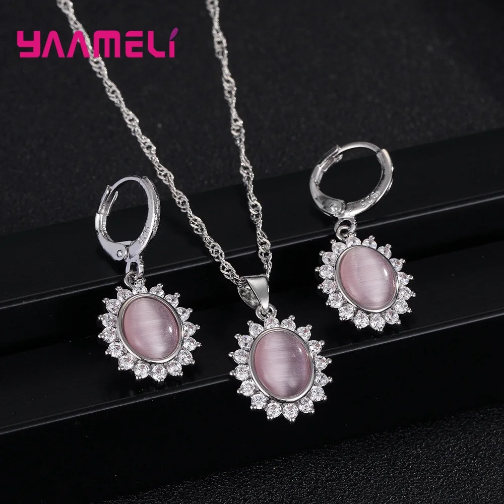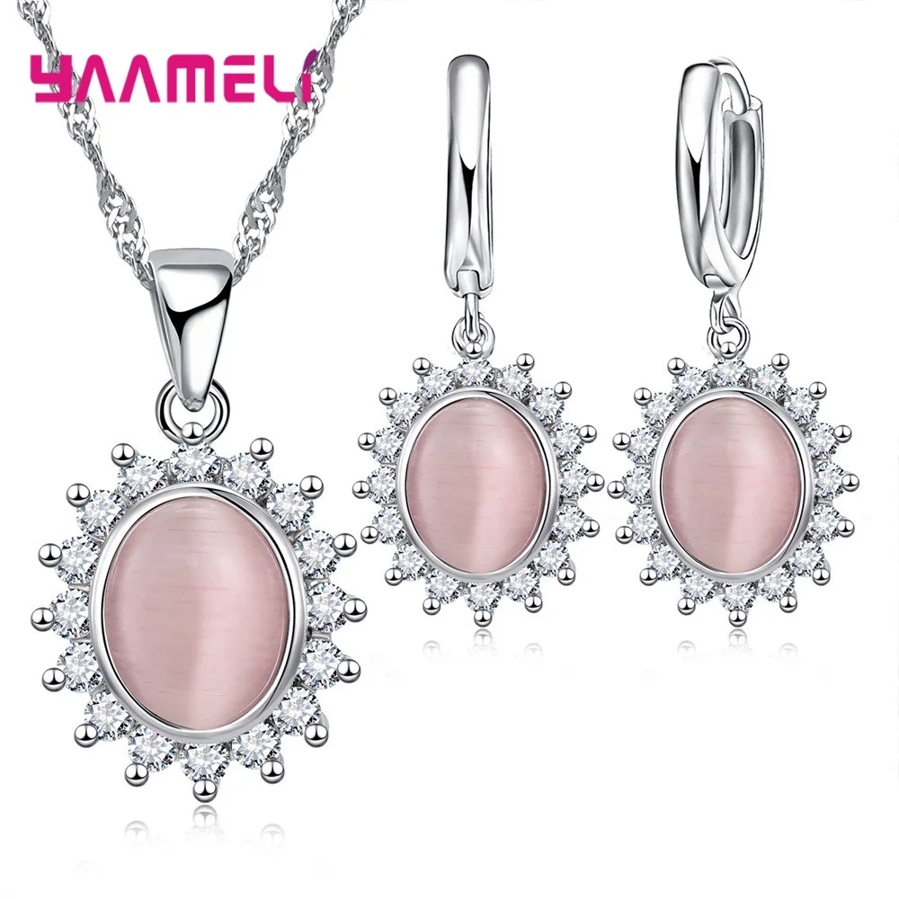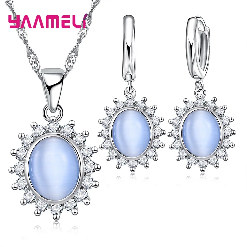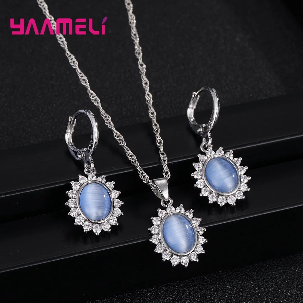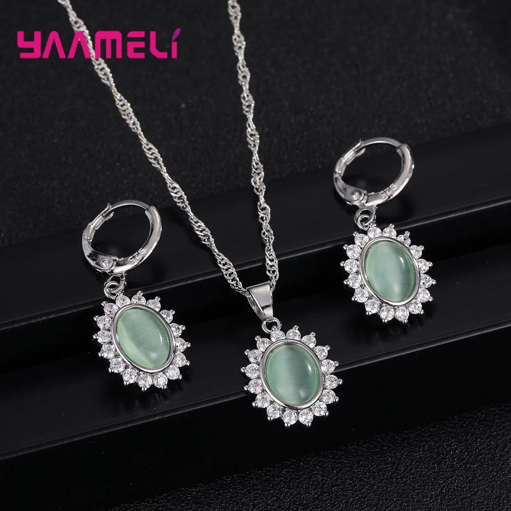 Ожерелье и серьги из серебра 925 пробы с опалом кошачий глаз