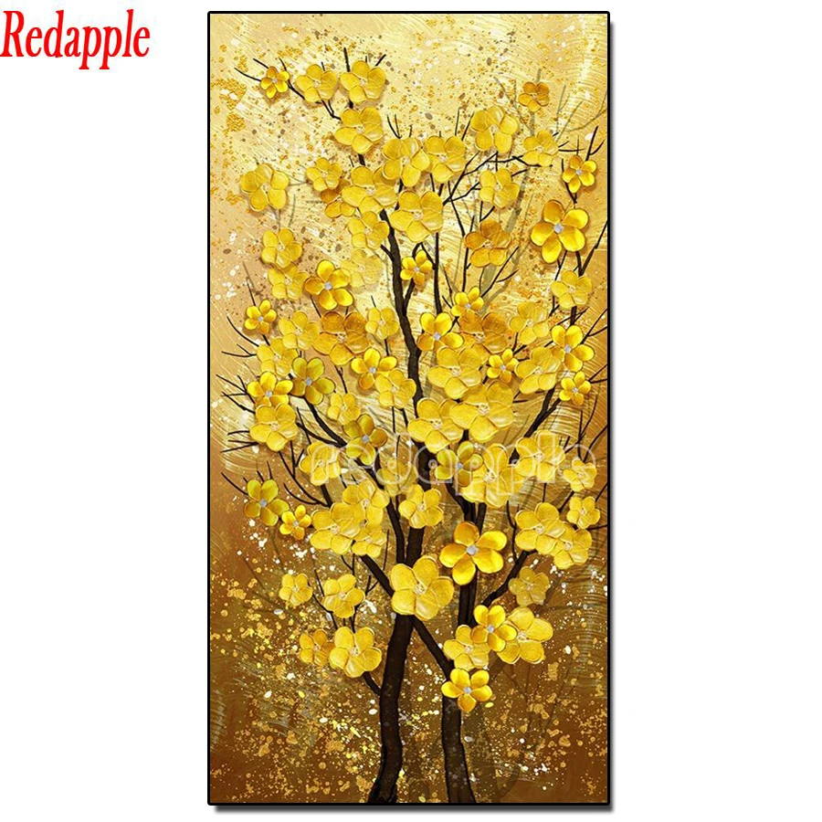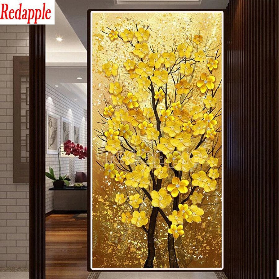 Алмазная живопись с золотым деревом, картина 5D сделай сам с квадратными и круглыми стразами, вышивка с монетами, цветами, украшение для большой входной стены
