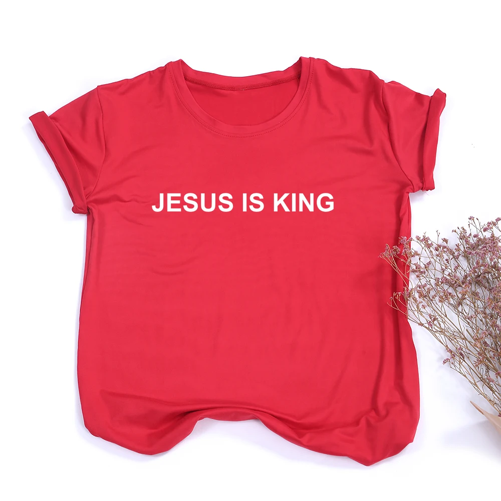 И надписью Jesus Is King женское Christian в винтажном стиле с коротким рукавом футболки Harajuku футболки эстетическое вера Религия Женская одежда Camisetas Mujer