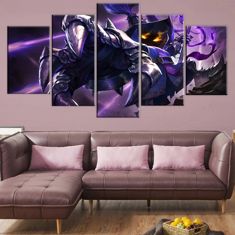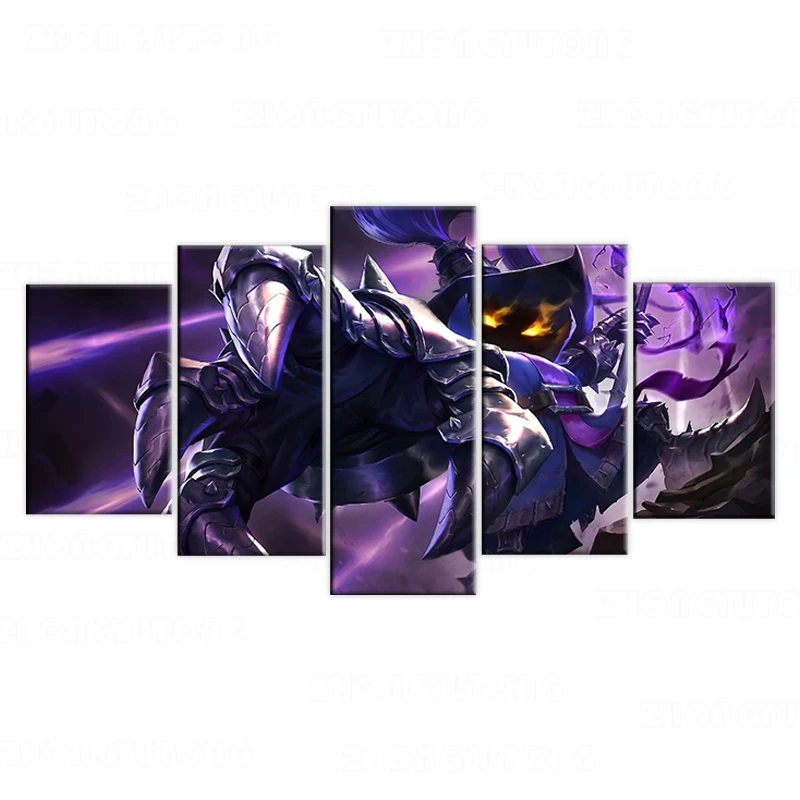 Современные домашние декоративные настенные картины модульного типа, 5 шт., Картина на холсте в рамке, игры Лига Легенд, картины Veigar