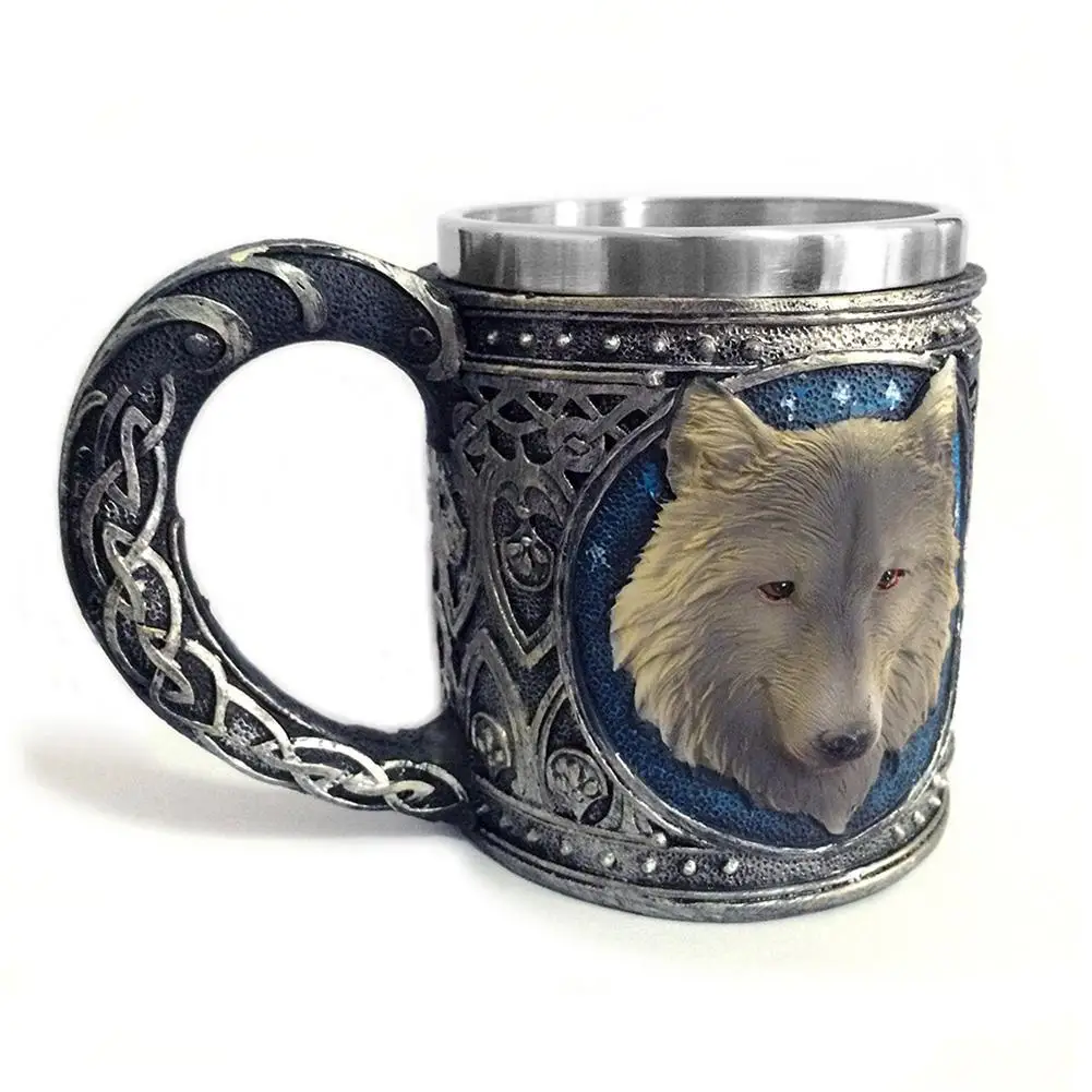 Кружка с 3D головой волка в стиле ретро, кружка из нержавеющей стали с подкладкой из смолы для чая, пива, кофе, подарок